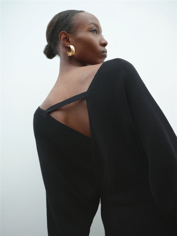 Abito corto in tubico Radha dalla texture compatta e confortevole, pensato per valorizzare la silhouette con stile. Lo scollo profondo dona un tocco sensuale ed elegante, mentre le maniche a palloncino aggiungono volume e femminilità. Un capo dal carattere deciso, perfetto per occasioni speciali o look da sera. Da abbinare a tacchi o stivali per un outfit audace e sofisticato.