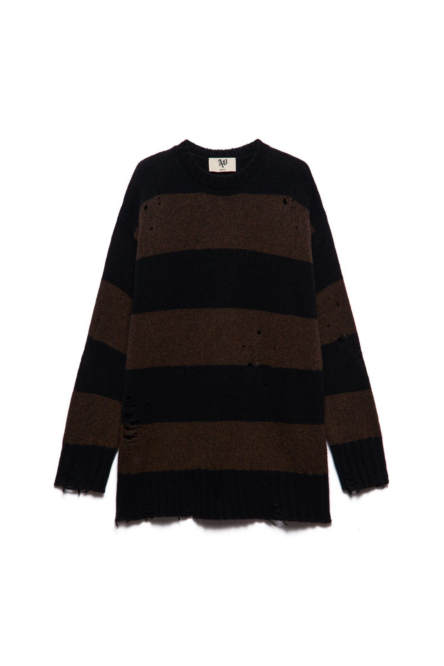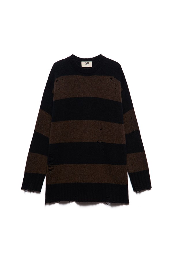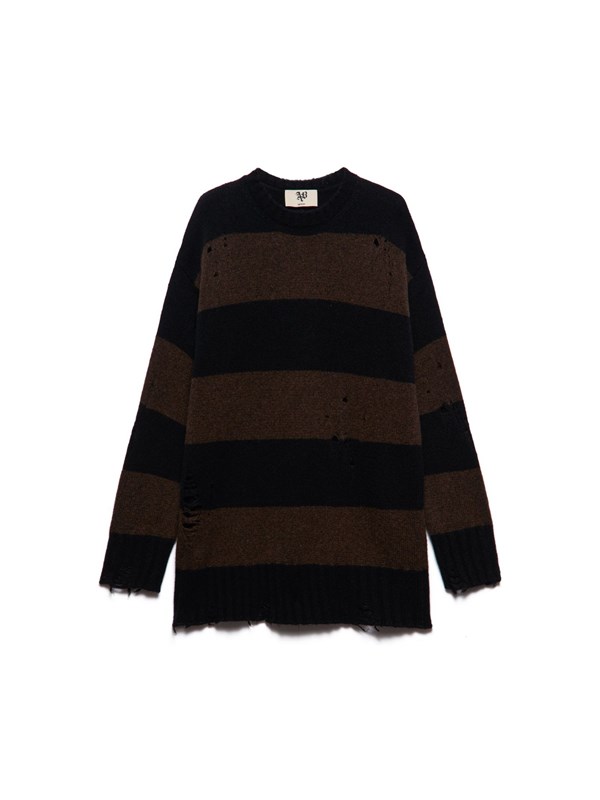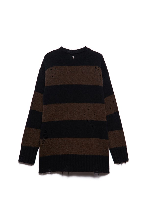 Perfetto per look disinvolti ma decisi, il maglione Aly reinterpreta il classico a righe con un twist contemporaneo. La lavorazione effetto destroyed e il fit oversize lo rendono un alleato easy, da abbinare a denim, minigonne o layering più audaci.