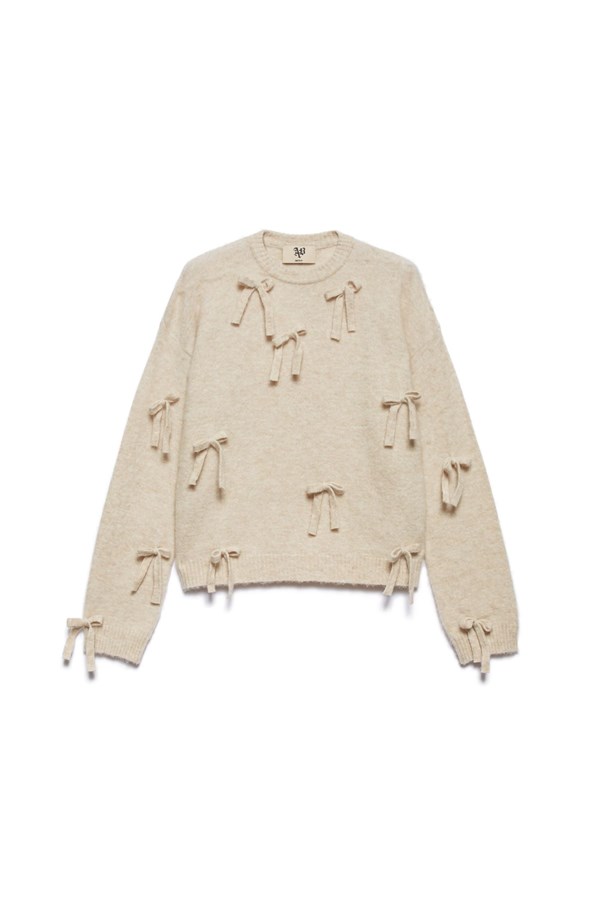 Filati soffici, proporzioni moderne e applicazioni 3D: il maglione Holly è l'essenziale quotidiano ricco di personalità. I fiocchi tono su tono applicati sul davanti aggiungono un tocco girly, bilanciato dal fit rilassato e dal design pulito. Completa il look il micro-logo metallico “AB” sul retro, firma iconica di Aniye By.