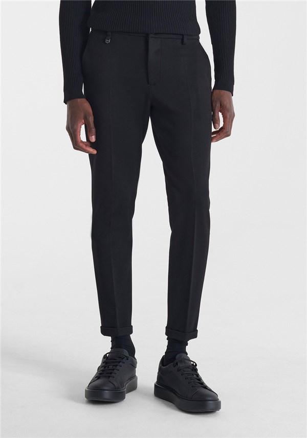 Antony Morato firma questi pantaloni realizzati in morbido tessuto twill misto viscosa elastico. La vestibilità super aderente risulta ideale per chi desidera mettere in risalto la figura. Dotati di una chiusura classica con zip nascosta e bottone, presentano due tasche all'americana e due tasche a filetto con bottone sul retro. Completano il capo i risvolti alle caviglie.