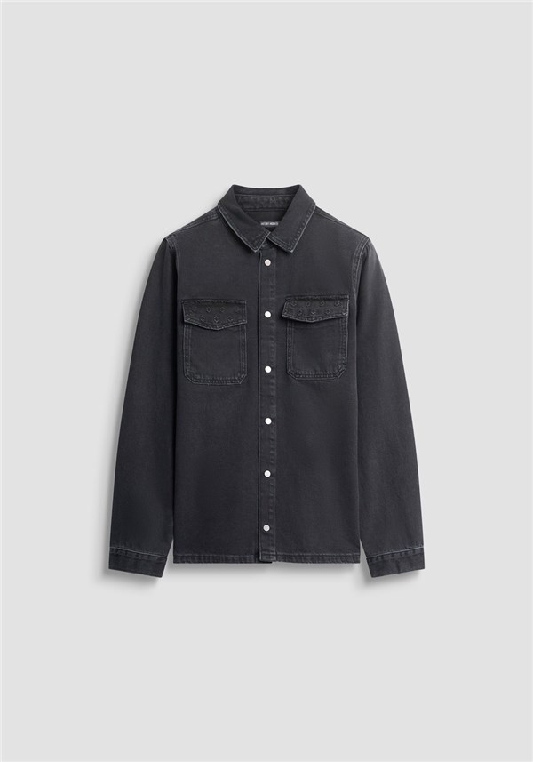 Camicia "Lenny" dalla vestibilità regular fit realizzata in denim nero. Pensata per essere utilizzata da sola o come capo overshirt, quindi indossata sopra una t-shirt. Colletto classico, chiusura frontale con bottoni a pressione, due tasche con patta applicate sul petto. Questo capo iconico è un vero must-have dal gusto anni 90, che per la sua grande versatilità e possibilità di abbinamento non può mancare nel guardaroba.