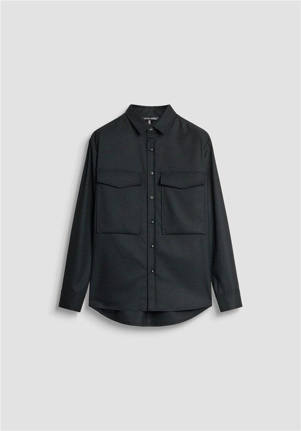 Camicia relaxed fit, realizzata in morbida viscosa dal tocco caldo e morbido. Questo capo è il perfetto esempio di camicia overshirt, che può essere utilizzata da sola o sopra ad una maglia. Colletto classico, chiusura frontale con bottoni, due tasche con patta applicate sul petto. Polsini con chiusura a bottone e piccola placchetta logata applicata sul retro.