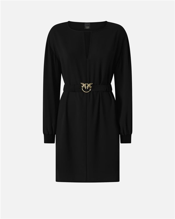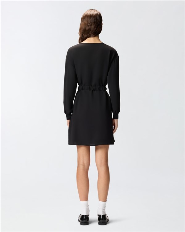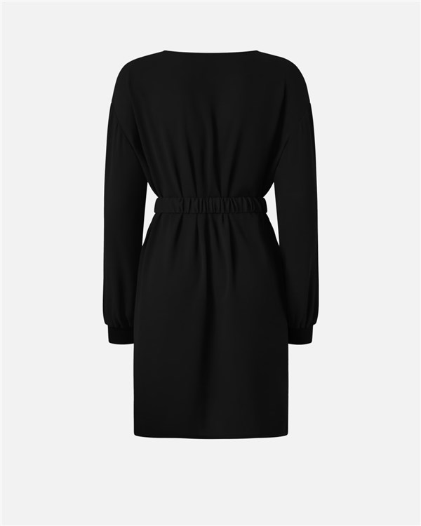 Abito corto con collo tondo definito da un'apertura a V sul davanti, e maniche lunghe morbide con spalla scesa e polsino elasticizzato. Il tessuto è un crêpe tecnico molto fine, fluido e leggero, particolarmente adatto anche a un indosso quotidiano. Completo di cintura abbinata nello stesso tessuto con fibbia Love Birds Diamond Cut in metallo. Indossalo tutti i giorni per avere praticità, romanticismo e femminilità in un unico capo da poter sfoggiare dall'ufficio fino all'aperitivo.