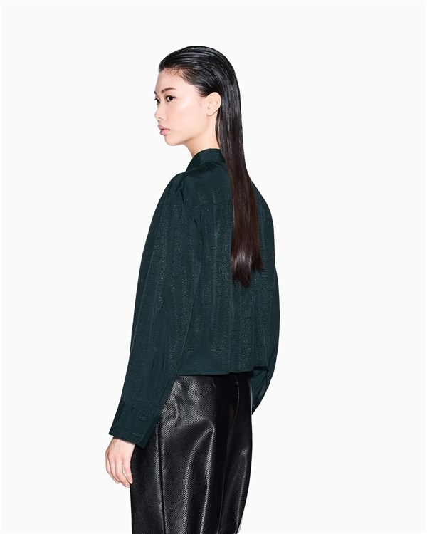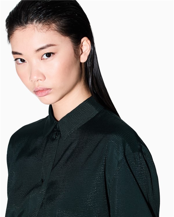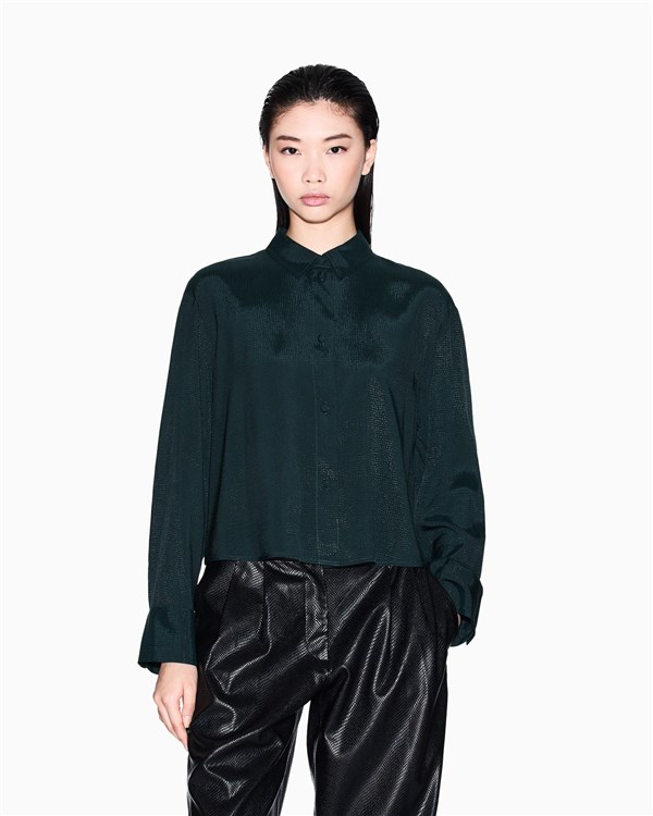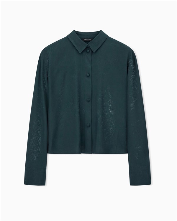 Camicia Armani Exchange da donna realizzata in tessuto con micro pois a rilievo. Questa camicia AX donna è caratterizzata da linee essenziali e bottoni rivestiti che donano un fascino senza tempo.