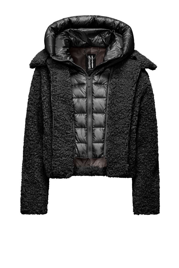 Questo cappotto corto da donna unisce un effetto agnellino in pelliccetta sintetica a un davantino staccabile in nylon brillante con cappuccio. La vestibilità regular offre un equilibrio tra stile e praticità, mentre il design bimaterico introduce una nota contemporanea al guardaroba invernale.