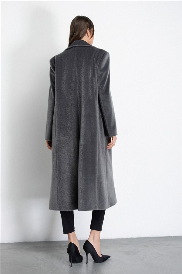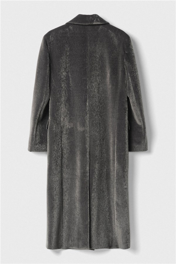 Modello doppiopetto realizzato in velour, chiusura con bottoni, tasche laterali con patta applicata, dietro spacco centrale, regular fit.
