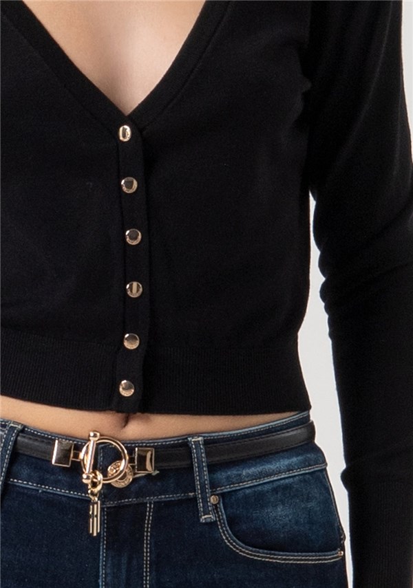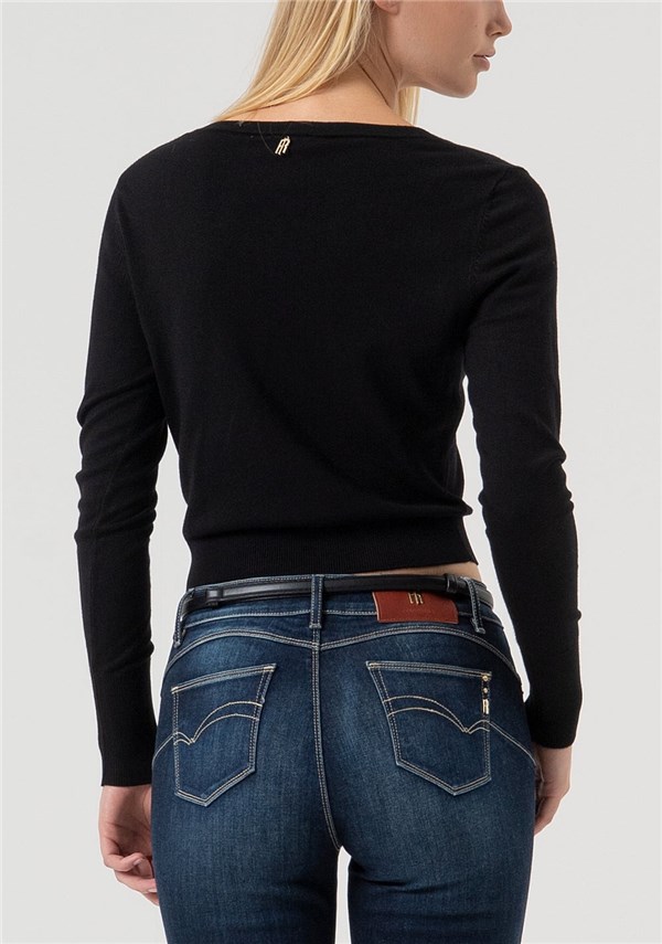 Cardigan regular con scollo a V, bottoni centrali per apertura, e con maniche lunghe.