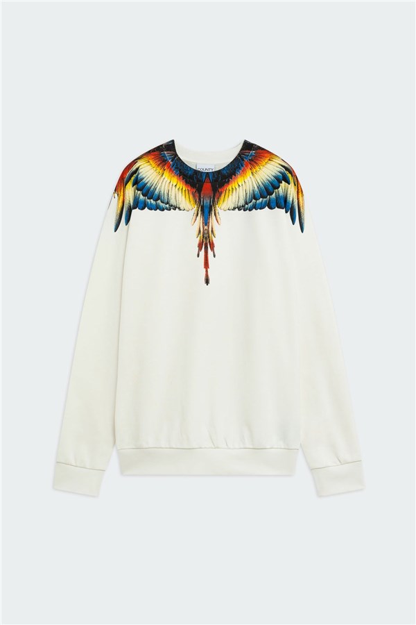 FELPA IN COTONE CON GIROCOLLO E FINITURE A COSTINE. CARATTERIZZATA DALLA STAMPA MULTICOLORE “ALI COUNTY OF MILAN” POSIZIONATA SU FRONTE E RETRO.