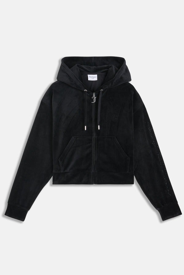 FELPA CROP OVERSIZE ICCLE CON CAPPUCCIO E LOGO JUICY COUTURE IN DIAMANTI NERO