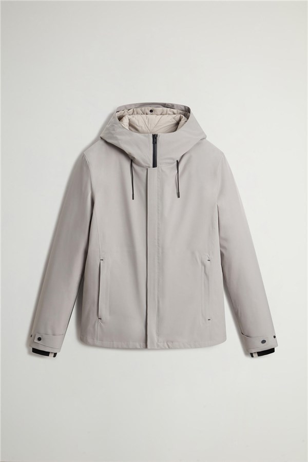 Progettata per garantire massima versatilità e protezione, questa giacca 3 in 1 è realizzata in twill di poliestere a 2,5 strati, idrorepellente, resistente al vento e traspirante. Lo strato esterno è parzialmente nastrato per una protezione extra e presenta cappuccio regolabile, zip bidirezionale impermeabile parzialmente coperta da patta, due tasche con zip, polsini regolabili e dettagli riflettenti sui lati per una maggiore visibilità al buio. Il design include una giacca interna rimovibile, imbottita e dotata di cappuccio, double face con un lato trapuntato e uno liscio a tinta unita. Ha tasche a filetto e tasca interna con zip sul lato trapuntato. È collegata allo strato esterno tramite una zip centrale, un bottone a pressione sul cappuccio e passanti su polsini e collo. I due strati possono essere indossati insieme o separatamente, in base alle condizioni climatiche o allo stile desiderato.