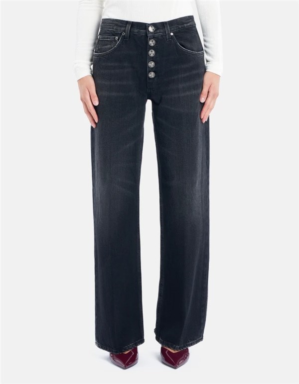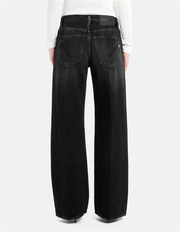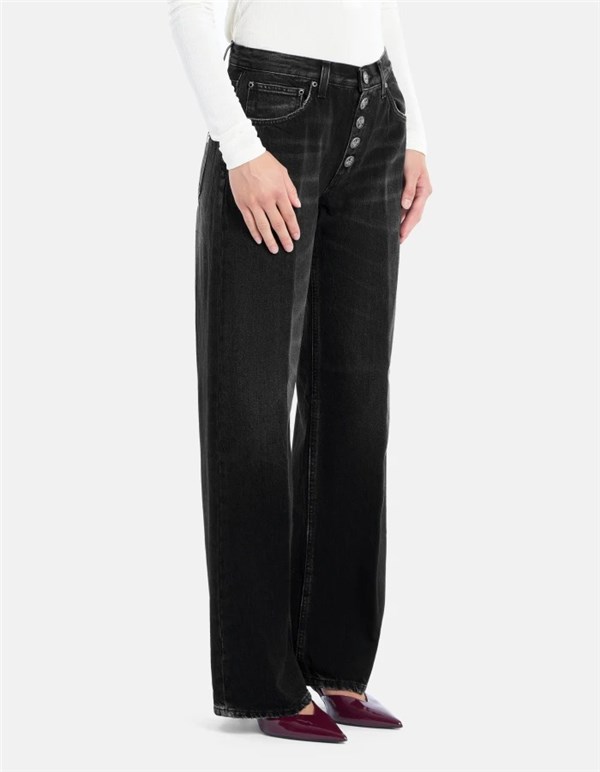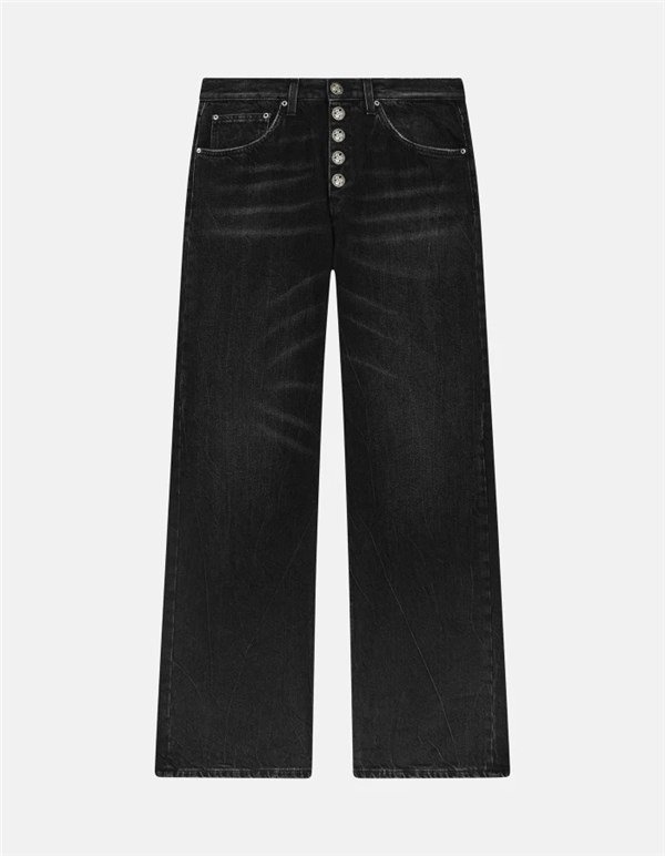 JEANS JACKLYN CINQUE TASCHE WIDE LEG FIT, VITA BASSA, GAMBA A PALAZZO. BOTTONIERA GIOIELLO. DENIM FISSO RESPONSABILE BLACK BLACK 12.50 OZ. LAVAGGIO NERO VINTAGE PULITO. LOGO DONDUP. MADE IN ITALY