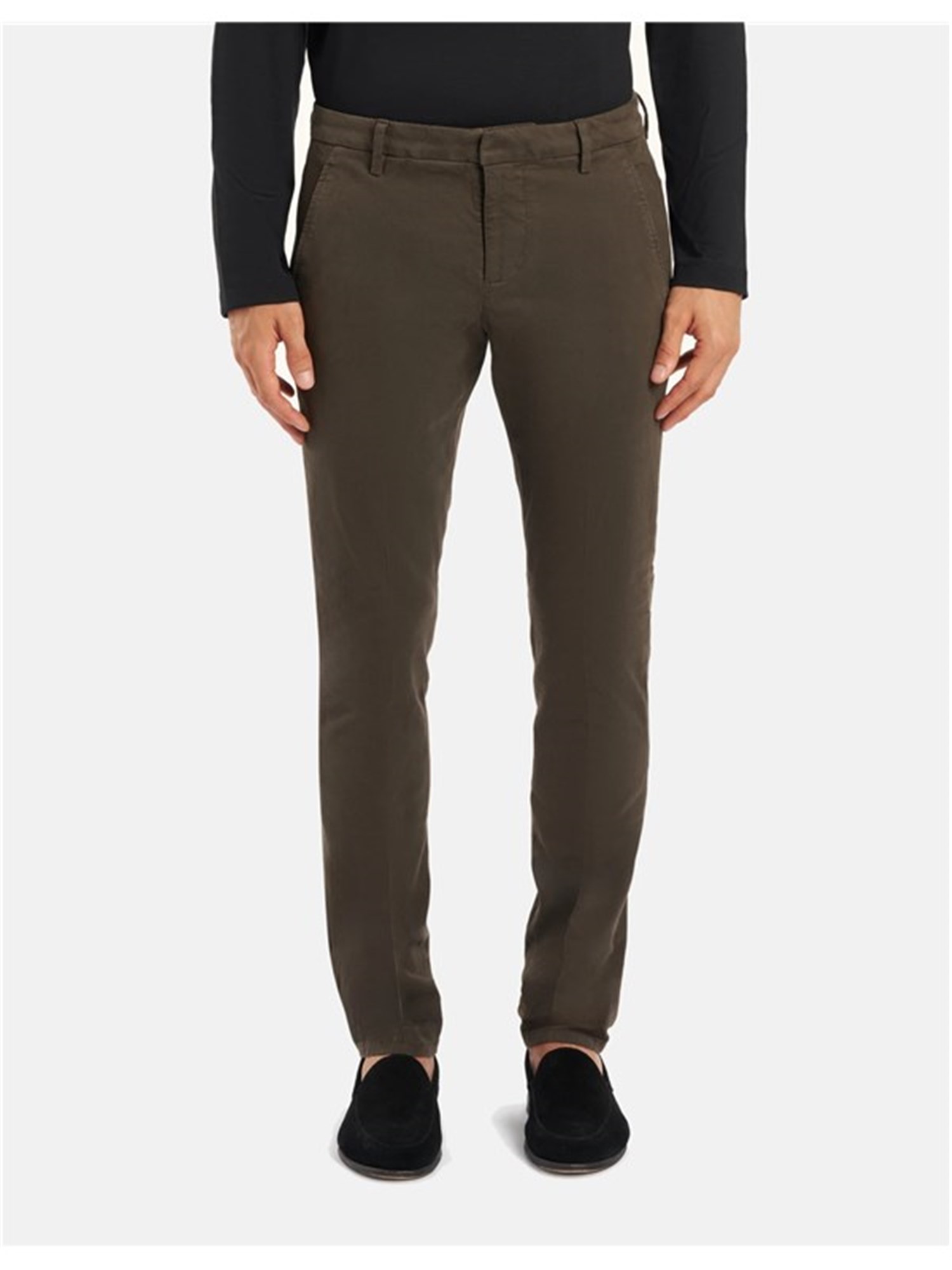PANTALONI GAUBERT SLIM CHINO, VITA BASSA, TASCHE A FILETTO POSTERIORI. GABARDINA STRETCH MANO CALDA. TINTURA IN CAPO. LOGO DONDUP. MADE IN ITALY