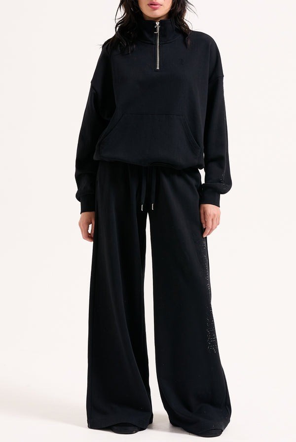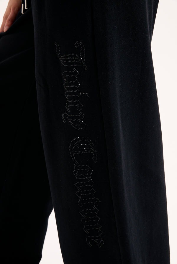 PANTALONE A GAMBA LARGA E VITA BASSA CON LOGO JUICY COUTURE IN DIAMANTI NERO