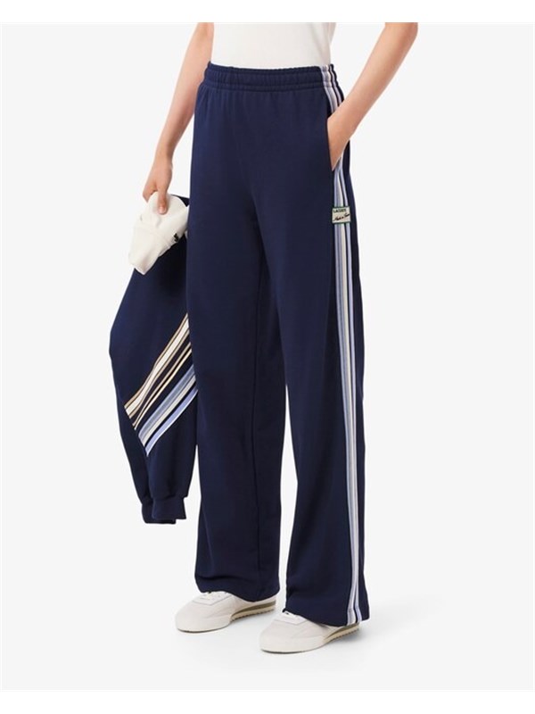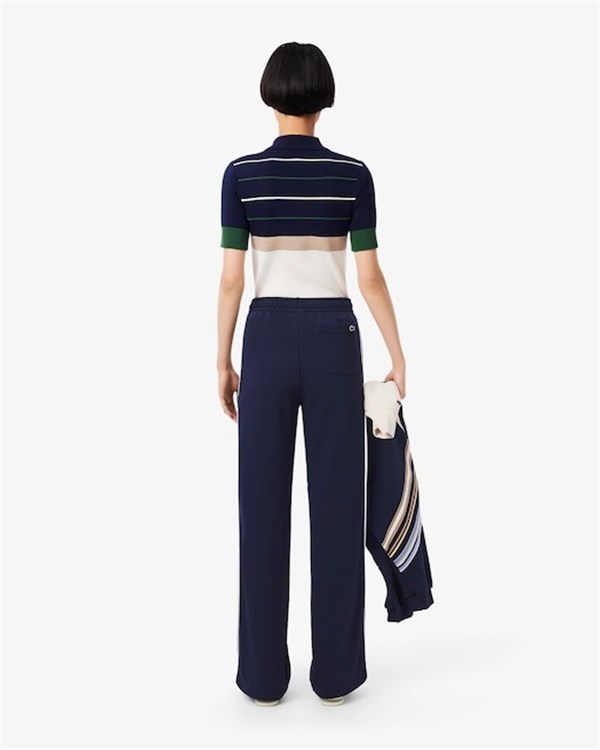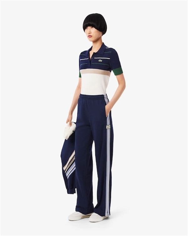 La moda incontra lo sportswear in questi pantaloni felpati, frutto di 90 anni di esperienza nella moda Lacoste e nello sportswear. Made in France in cotone felpato, ha un taglio ampio e dettagli sofisticati, tra cui uno stemma con logo e le bande testurizzate con righe a contrasto. Uno stile sofisticato, rifinito con il tradizionale coccodrillo ricamato.