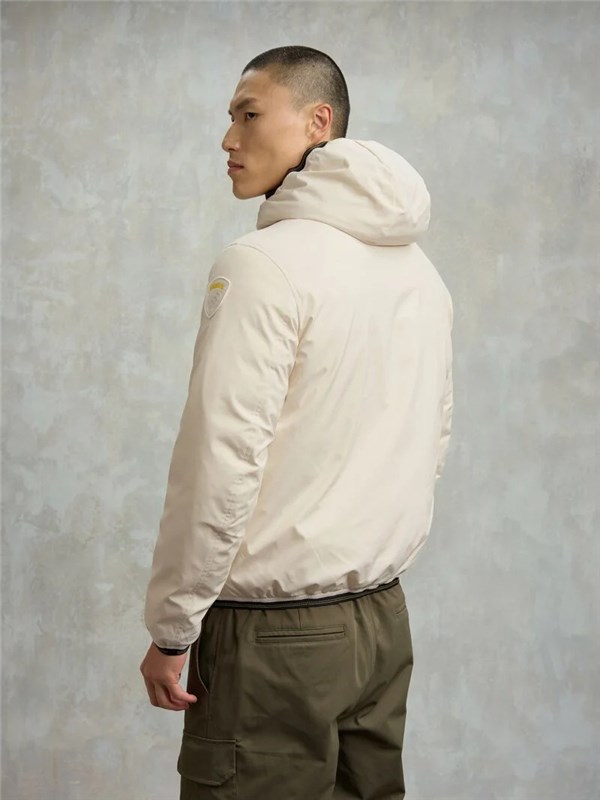 Piumino idrorepellente monocromatico trapuntato internamente ad onde orizzontali. Piumino con tasca sul petto applicata a sinistra con zip verticale. Capo che fonde la tradizione militare Blauer e lo riadatta alla vita quotidiana.