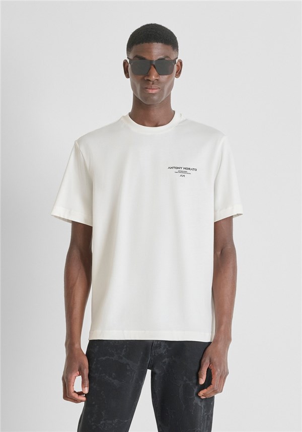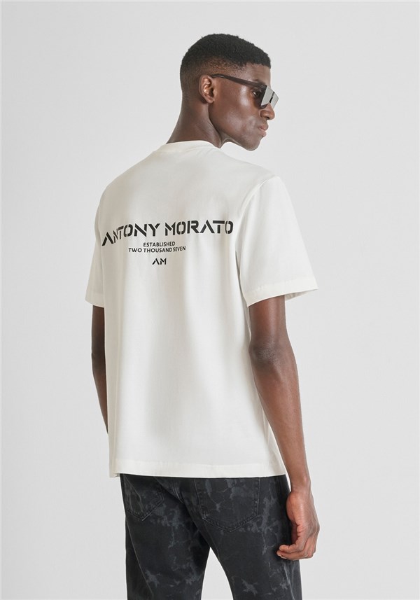 T-shirt girocollo relaxed fit realizzata in morbido cotone. Sul petto spicca un piccolo logo Antony Morato a contrasto, che viene ripreso sul retro della t-shirt con una maxi stampa. Uno stile moderno che rivisita la classica t-shirt con logo, rendendola più fresca e street.