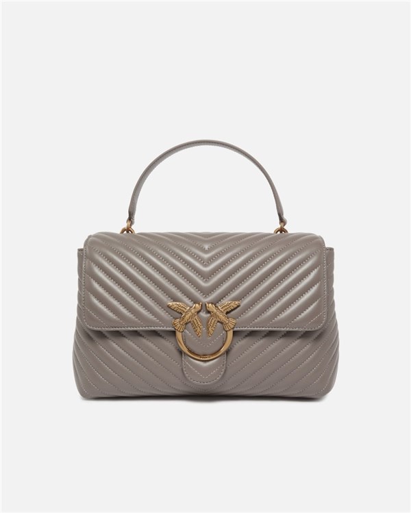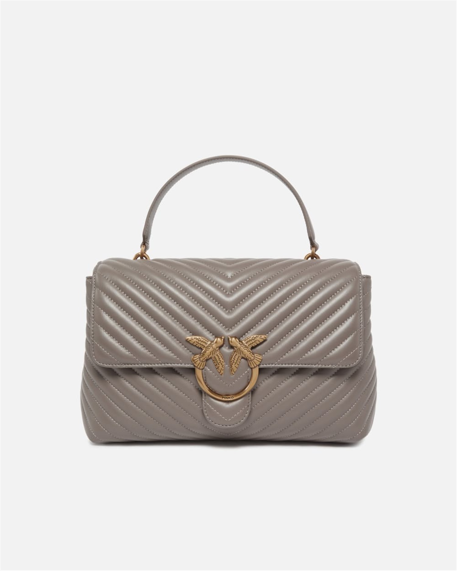 Big Love Bag Puff in nappa trapuntata con motivo chevron. La chiusura è completata dall'iconica fibbia in metallo Love Birds Diamond Cut. L'interno è foderato in microfibra scamosciata e comprende tramezza chiusa con zip e tasca a parete. La tracolla combina la classica catena metallica rotonda al pratico spallaccio regolabile in nappa.