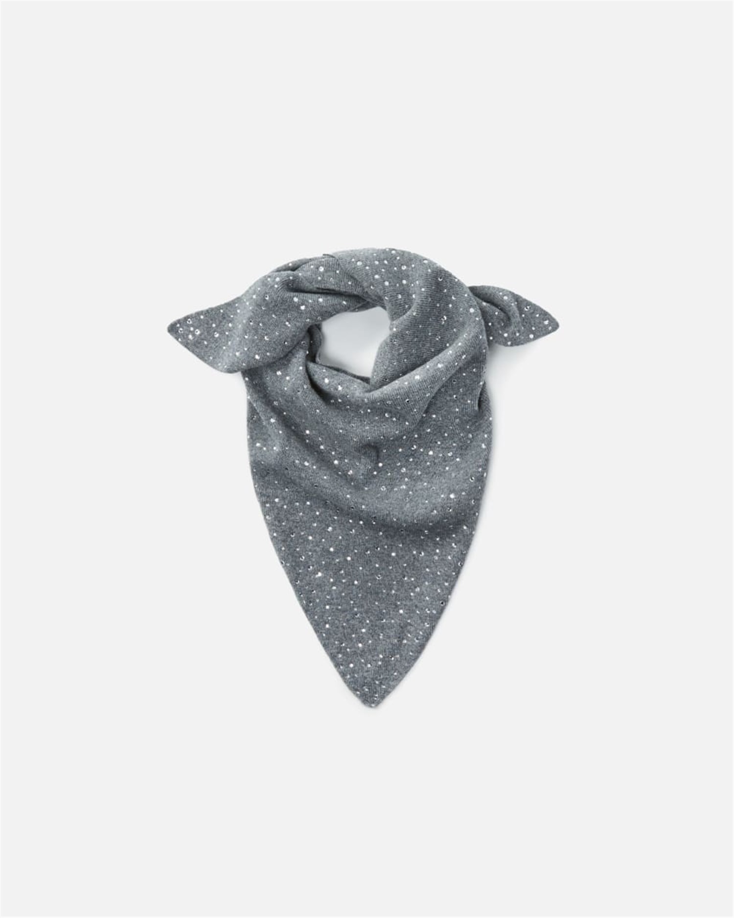 Sciarpa di forma triangolare realizzata in pura lana vergine lavorata a maglia rasata che conferisce al modello morbidezza e resistenza al tempo stesso. L'accessorio è arricchito da una pioggia di scintillanti strass su un lato, per un omaggio al DNA PINKO, ed è personalizzato da un'etichetta con il logo lettering del brand sull'altro lato. Indossa questa sciarpa originale al collo, a mo' di foulard, oppure portala come scialle sulle spalle per far brillare i tuoi look serali anche quando scendono le temperature.
