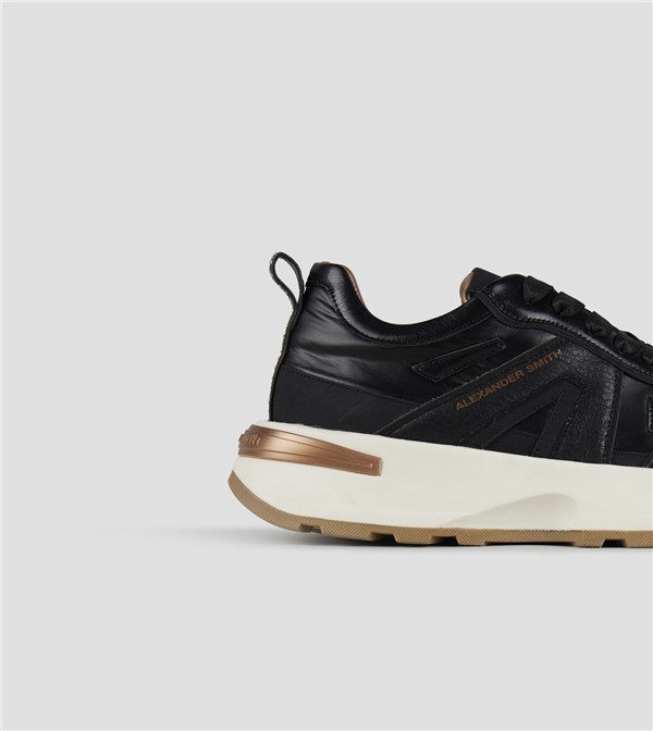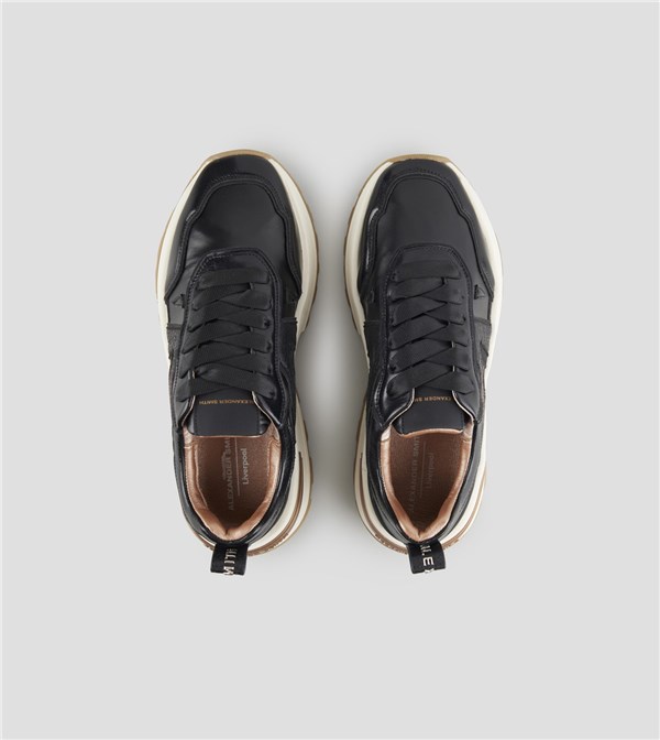 Il nuovo modello firmato Alexander Smith, che prende ispirazione da una delle città più iconiche del Regno Unito, è la nuova proposta running del brand: linea affusolata, suola importante e dettagli ricercati danno vita ad una sneakers versatile e distintiva, in questa variante in nylon e laminato nero.