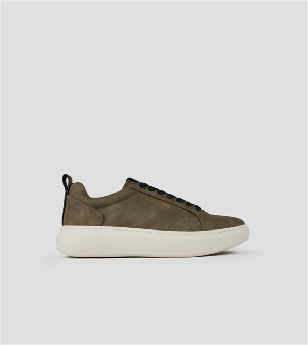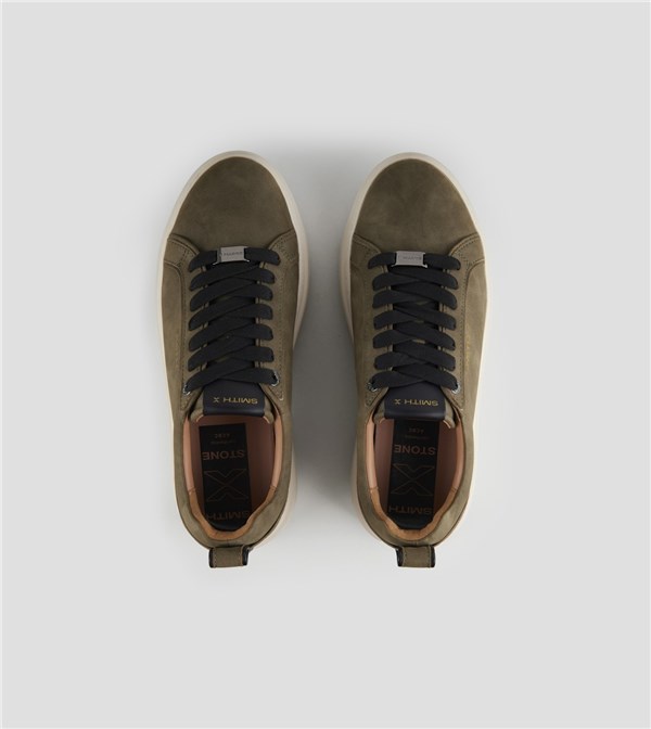 Sneakers Stone Uomo in suede verde militare e dettagli neri