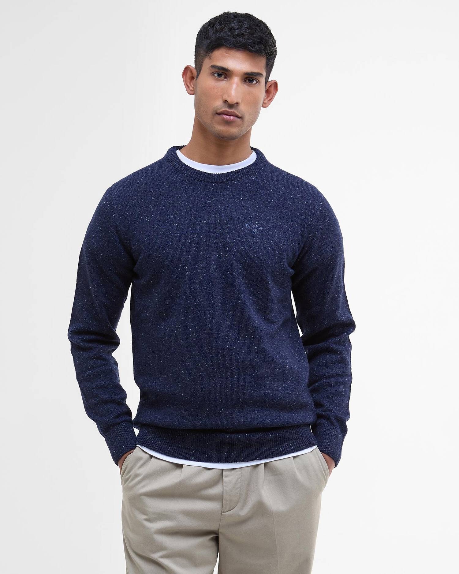 Realizzata in 100% lana per una sensazione di morbidezza e calore, la felpa Barbour Tisbury è un must per il guardaroba casual maschile. Il classico capo a girocollo è caratterizzato da dettagli screziati all-over che conferiscono al capo un look elegante, mentre le maniche lunghe rendono questo strato ancora più accogliente.