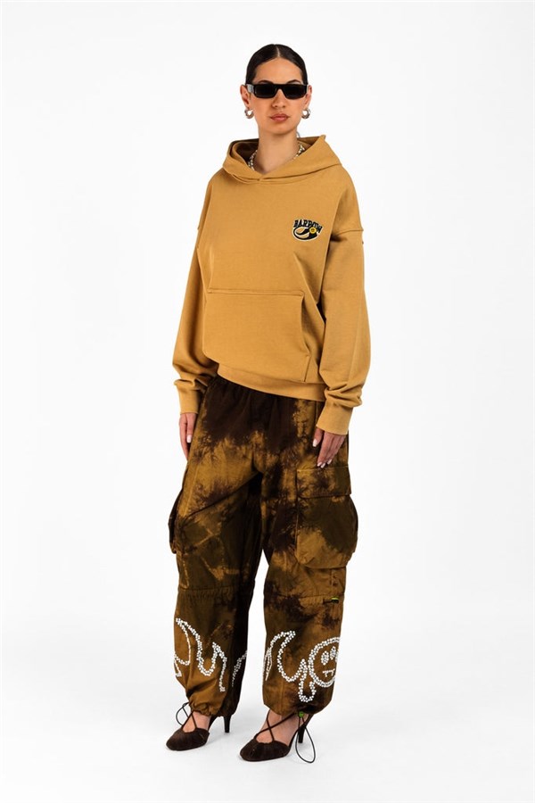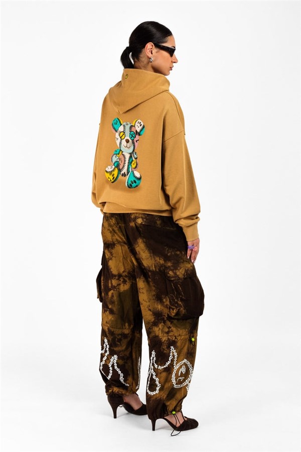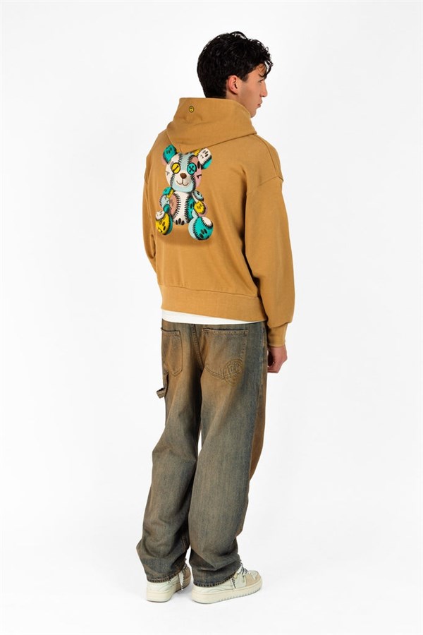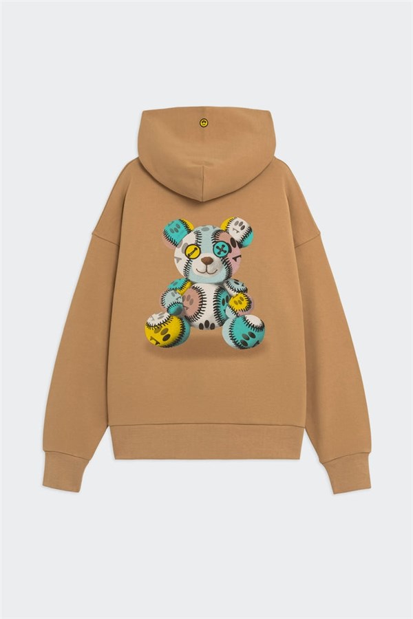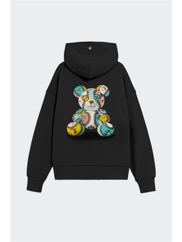 Felpa con cappuccio in 100% cotone con logo BARROW ricamato con dettaglio smile sul petto e maxi stampa orsetto patchwork sul retro. Tasca a marsupio e mini patch smile applicata sul cappuccio.