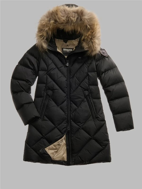 Piumino lungo idrorepellente trapuntato a linee geometriche. Piumino sfiancato per donare risalto al punto vita.