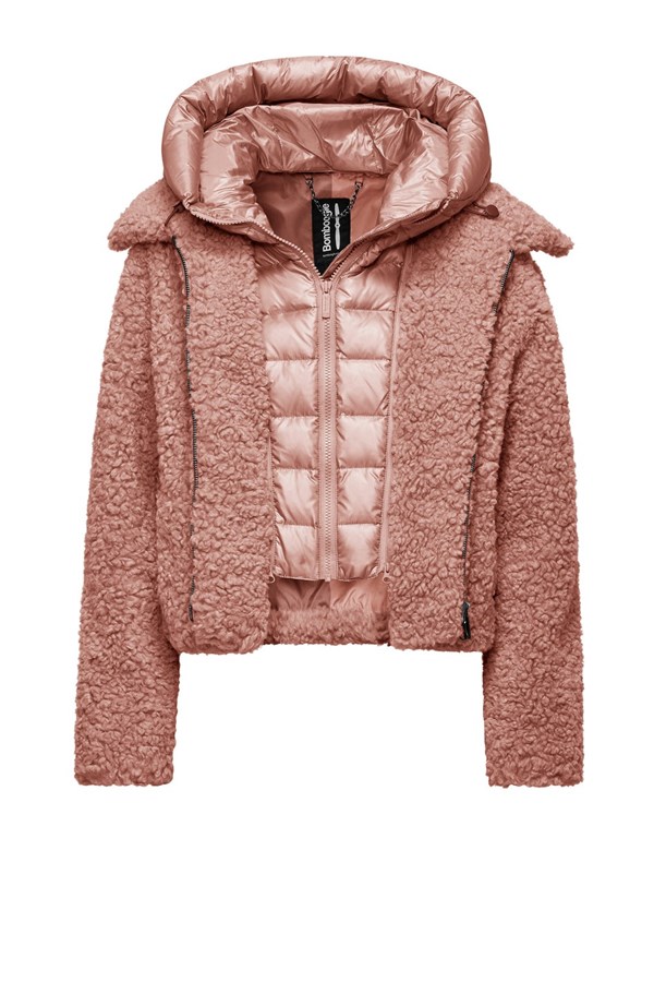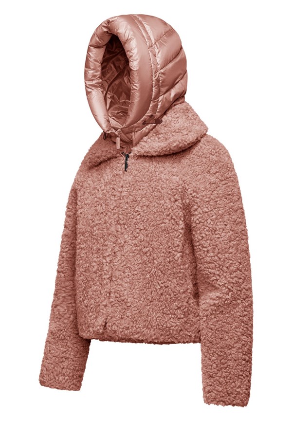 Questo cappotto corto da donna unisce un effetto agnellino in pelliccetta sintetica a un davantino staccabile in nylon brillante con cappuccio. La vestibilità regular offre un equilibrio tra stile e praticità, mentre il design bimaterico introduce una nota contemporanea al guardaroba invernale.