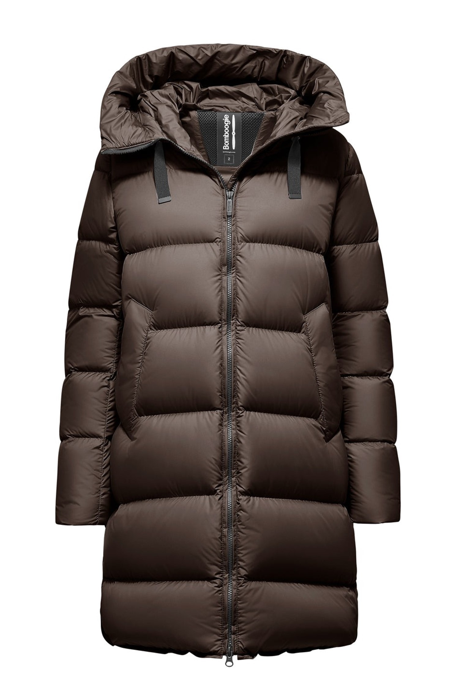 Questo piumino lungo da donna offre stile e protezione per la stagione fredda. La linea a “A” valorizza la silhouette e garantisce una vestibilità comoda, mentre il cappuccio fisso assicura una barriera efficace contro il vento. La zip frontale robusta rende pratiche le attività quotidiane. Il tessuto esterno in poliestere leggero, con finitura semi-opaca effetto microfibra e trattamento water resistant, protegge dalla pioggia leggera mantenendo un aspetto sobrio e curato.