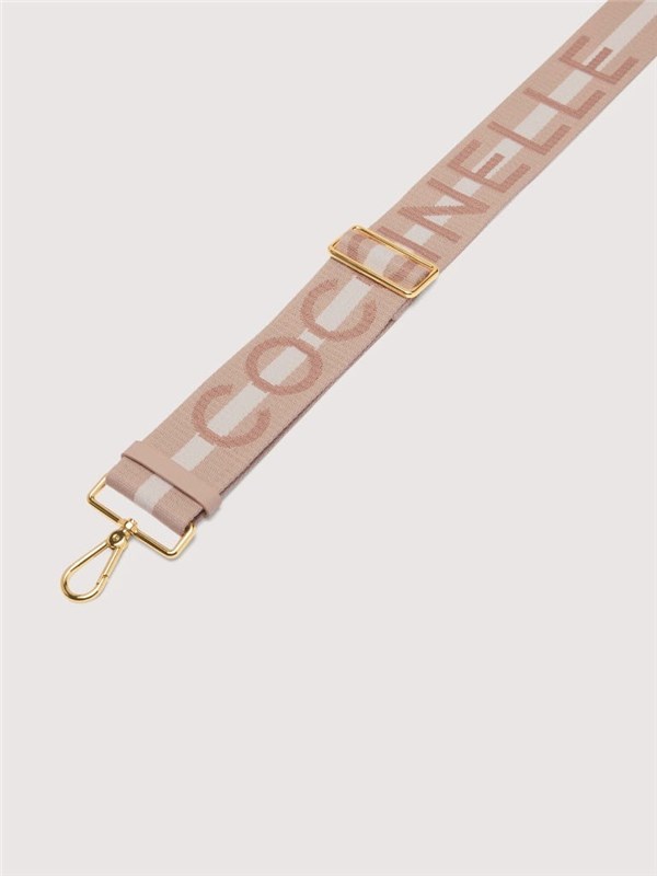Tracolla in tessuto con maxi logo Coccinelle a contrasto. Regolabile con anello scorrevole. Perfetta per personalizzare la propria borsa.
