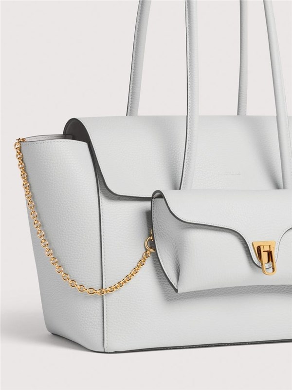Coccinelle Double Beat è una vera daily companion, una borsa capiente con patta, dotata di pratici manici tubolari per essere indossata comodamente a spalla. Grazie ad un innovativo funzionamento, la tasca frontale è staccabile e si trasforma all’occorrenza in pouch portatutto o in elegante clutch da indossare per le occasioni più speciali. La tasca, infine, è anche simbolo di identità Coccinelle grazie all'iconico dettaglio plettro. Questo modello è realizzato in pelle lavorata tramite specifici macchinari e poi bottalata al fine di mantenerne la morbidezza. È una pelle molto resistente che si presta a una facile pulizia, ideale per un uso quotidiano.