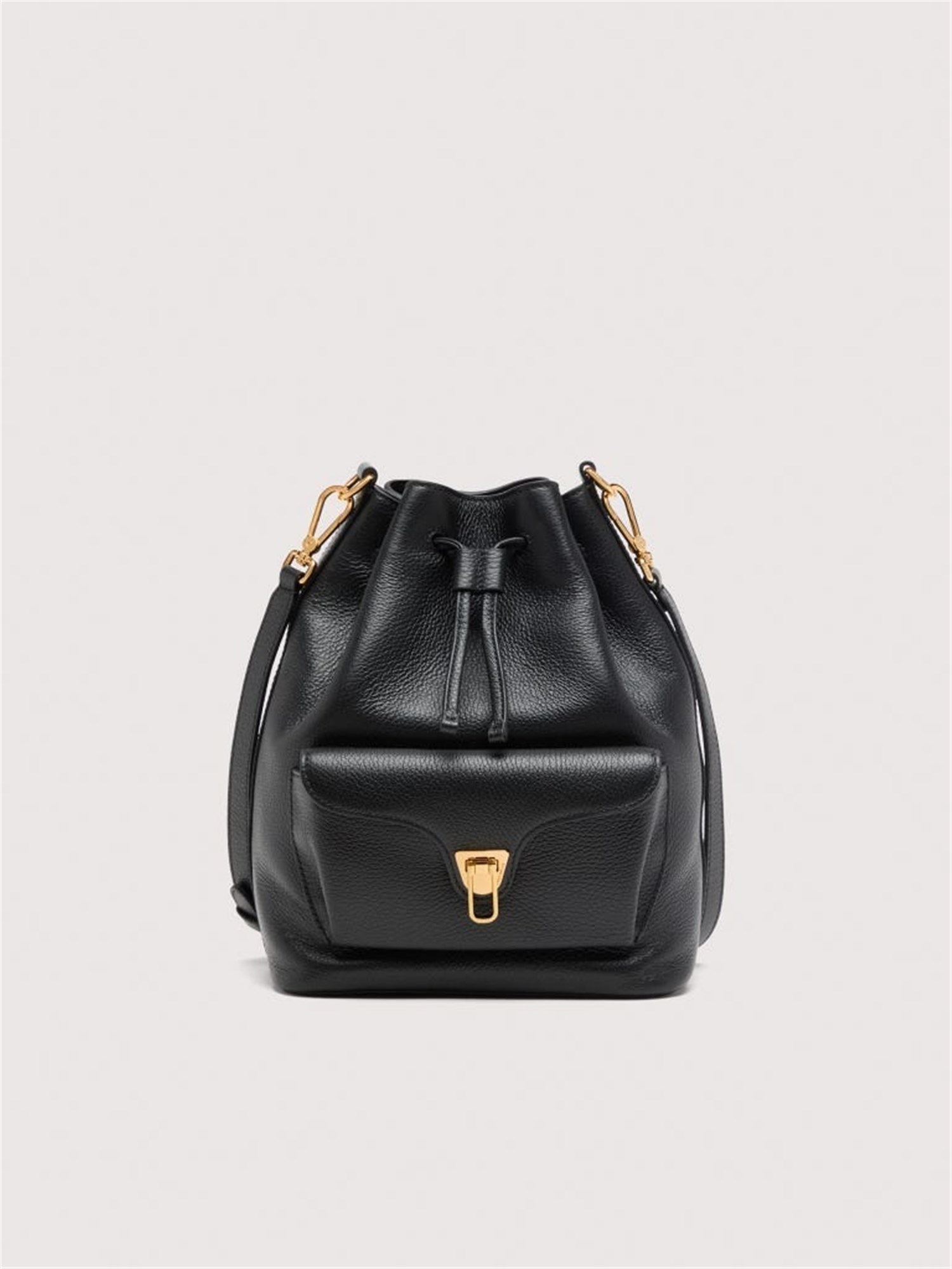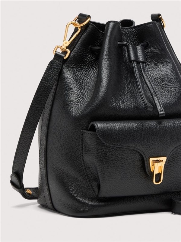 Coccinelle Beat è una tra le icone del brand: la distintiva chiusura a battente con il plettro è il simbolo d’identità Coccinelle, che per questa collezione si reinventa con funzionalità contemporanee ed eleganti. Il secchiello con tracolla in pelle dalla doppia portabilità è un mix perfetto tra struttura e morbidezza, tra praticità e design contemporaneo. Questo modello è realizzato in pelle lavorata tramite specifici macchinari e poi bottalata al fine di mantenerne la morbidezza. È una pelle molto resistente che si presta a una facile pulizia, ideale per un uso quotidiano.