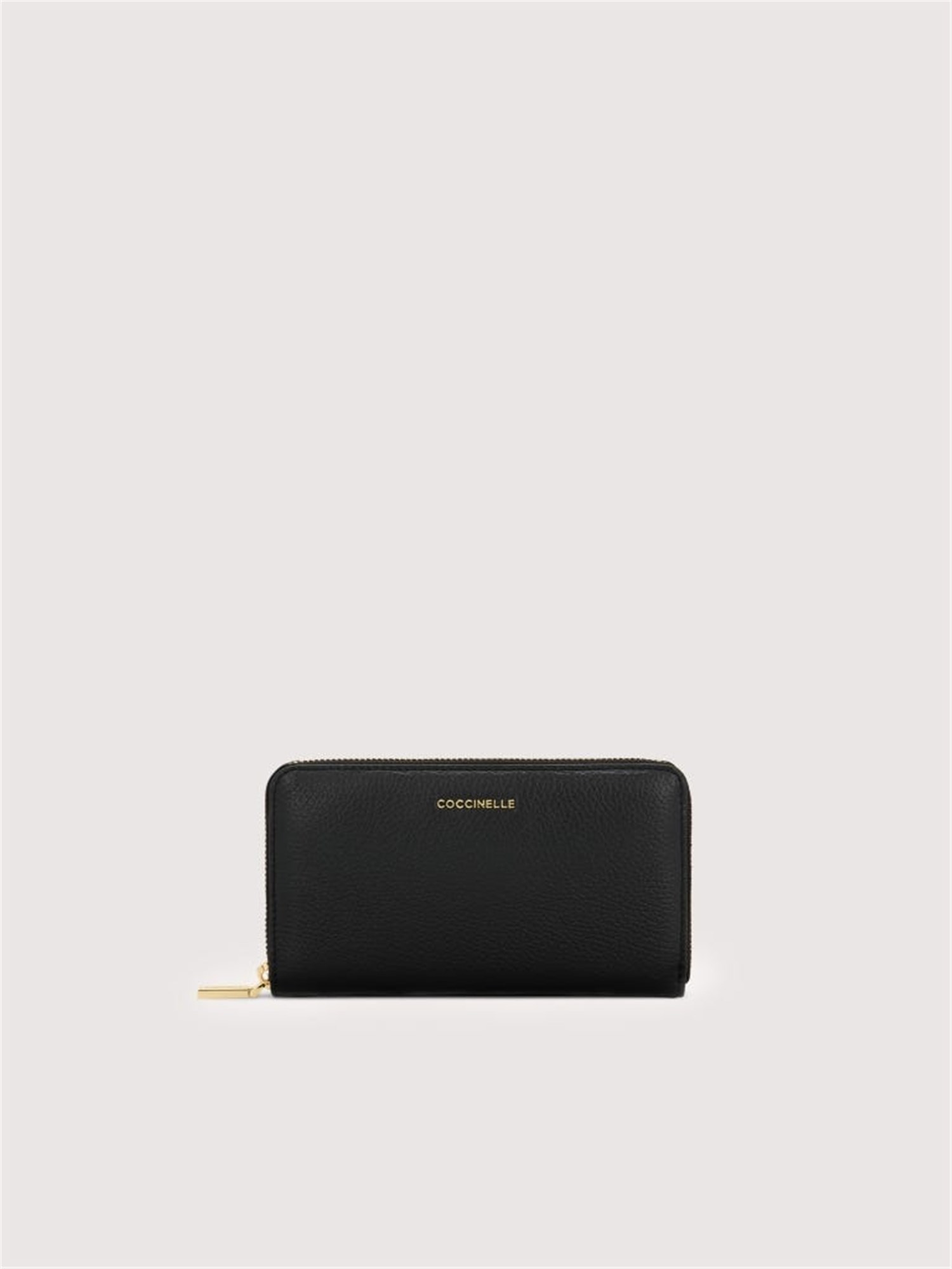 Questo portafoglio con zip della linea Metallic dalle ampie dimensioni è impreziosito dal logo Coccinelle in metallo. Il suo spazio è organizzato al meglio per riporvi il necessario con ordine e cura.