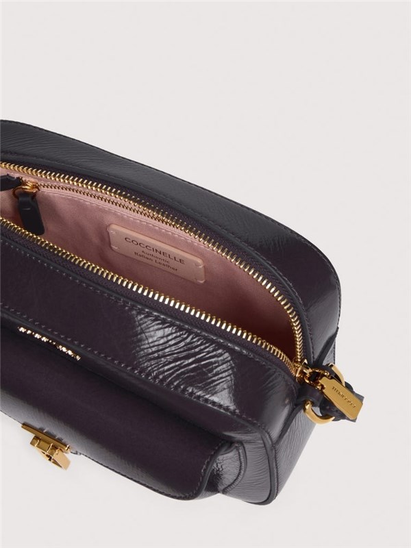Questa camera bag della linea Beat è facile da abbinare ad ogni tipo di outfit. È arricchita da una tasca esterna caratterizzata dall'iconica chiusura in metallo a forma di plettro, ideale per tenere sempre al sicuro i propri oggetti personali. Questo modello è realizzato in pelle lavorata tramite specifici macchinari che rilasciano sulla superficie un sottile velo di vernice donando così un aspetto lucido e volutamente stropicciato.