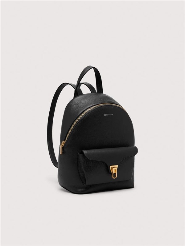 Coccinelle Beat è una tra le icone del brand: la distintiva chiusura a battente con il plettro è il simbolo d’identità Coccinelle, che per questa collezione si reinventa con funzionalità contemporanee ed eleganti. Lo zaino con chiusura zip è l'immancabile compagno di viaggio, un mix perfetto tra struttura e morbidezza, tra praticità e design contemporaneo. Questo modello è realizzato in pelle lavorata tramite specifici macchinari e poi bottalata al fine di mantenerne la morbidezza. È una pelle molto resistente che si presta a una facile pulizia, ideale per un uso quotidiano.