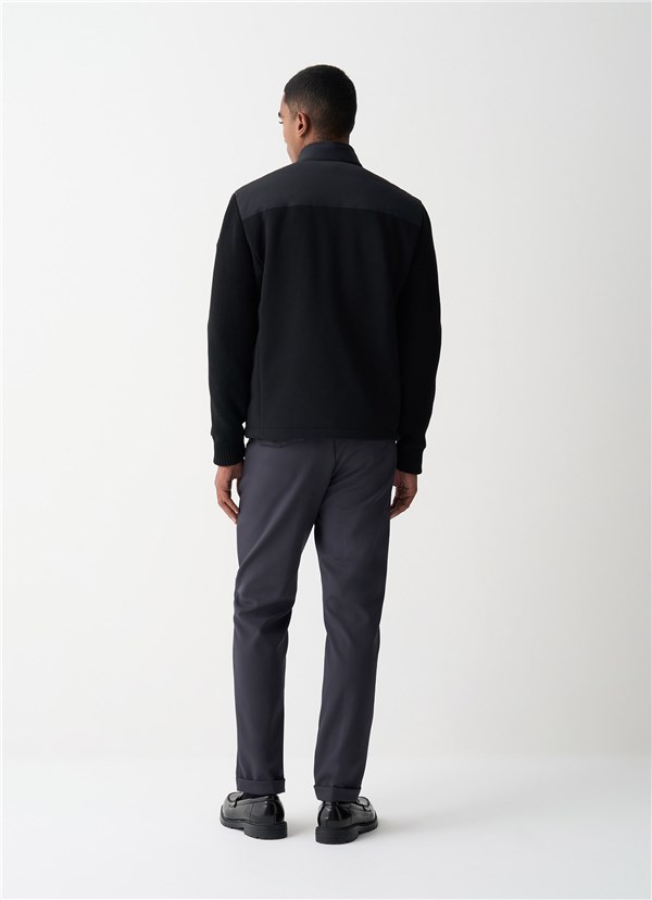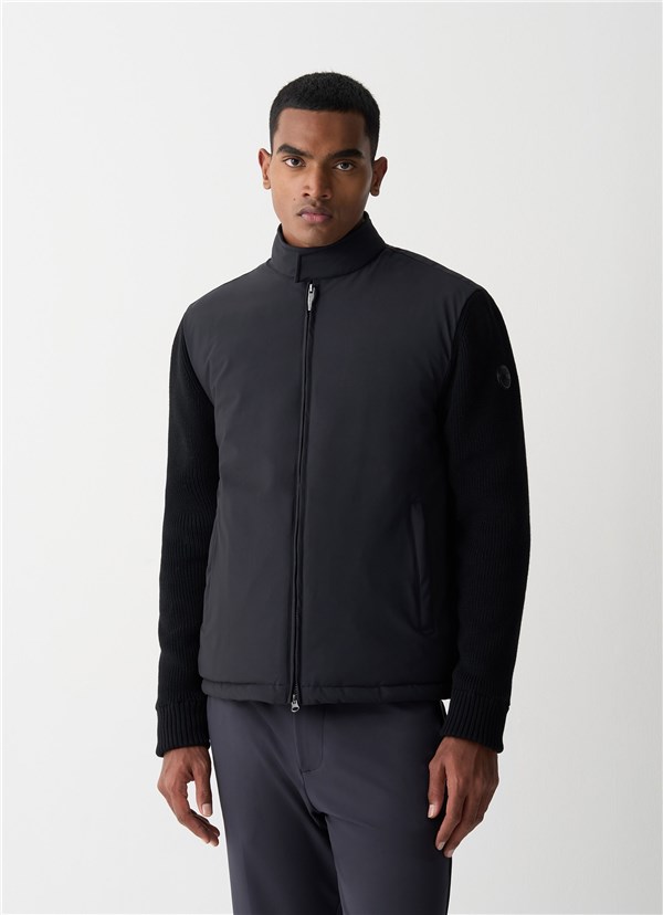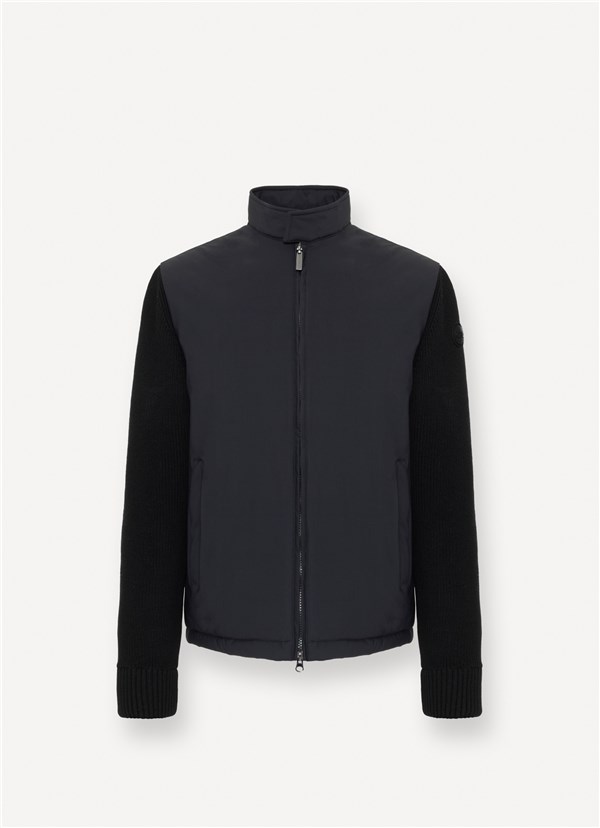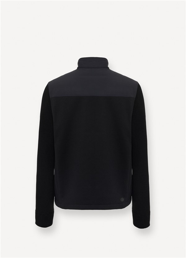 Dal carattere deciso, questo capo si distingue per il colletto con bottone a pressione ispirato al mondo biker. Il fronte liscio e imbottito si abbina con armonia alle maniche a costine in maglia e al retro in felpa, per un perfetto equilibrio tra funzionalità e stile. Un modello unico, ideale per affrontare con versatilità le temperature più miti.