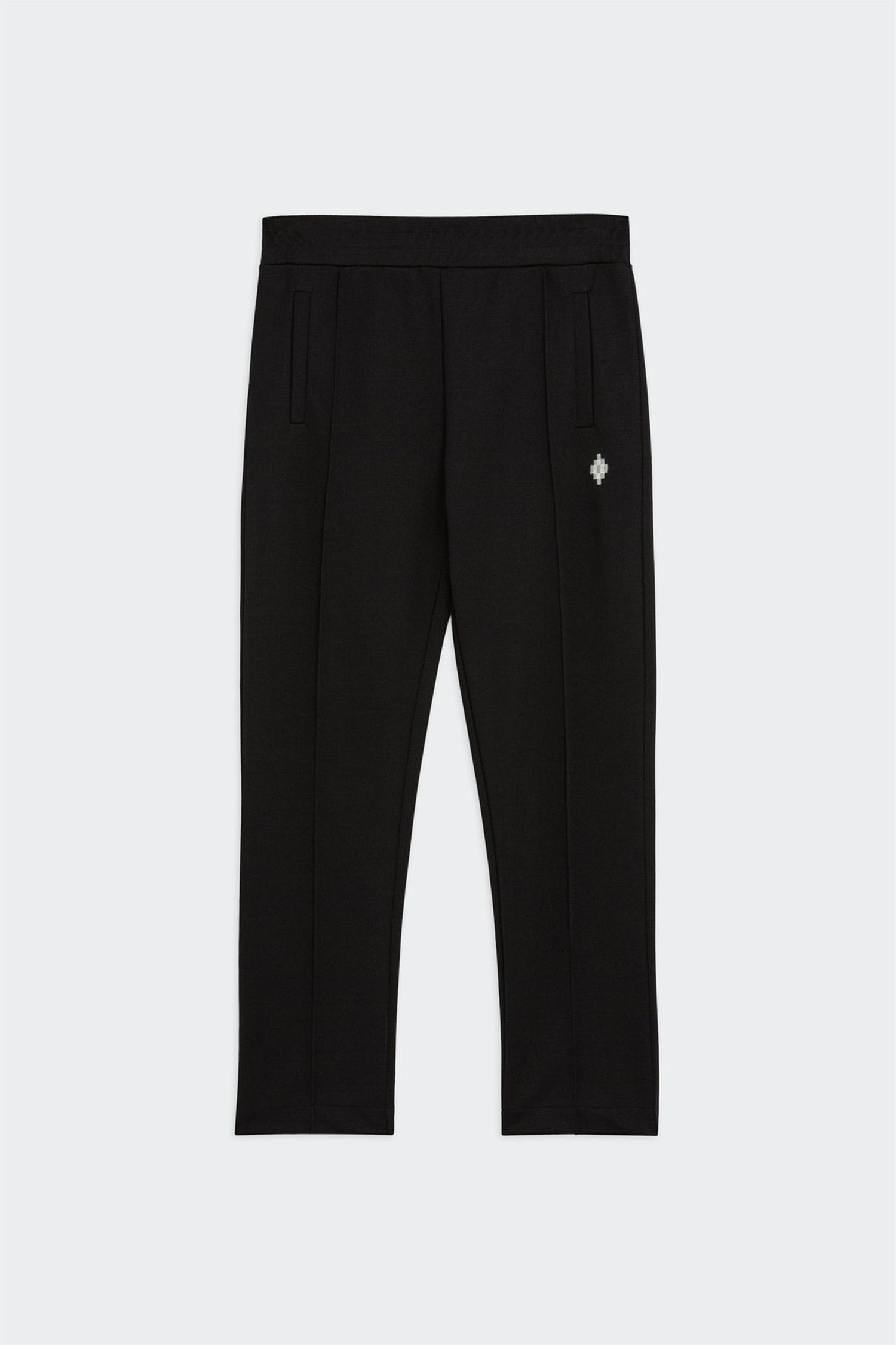 PANTALONI SPORTIVI IN TRIACETATO CON VITA ELASTICIZZATA E COULISSE REGOLABILE. DETTAGLI CON CUCITURE FRONTALI E TASCHE LATERALI CON ZIP. LOGO “COUNTY OF MILAN” STAMPATO A CONTRASTO SUL RETRO E LOGO GEOMETRICO STAMPATO SUL FRONTE. FONDO CON APERTURA LEGGERMENTE AMPIA.