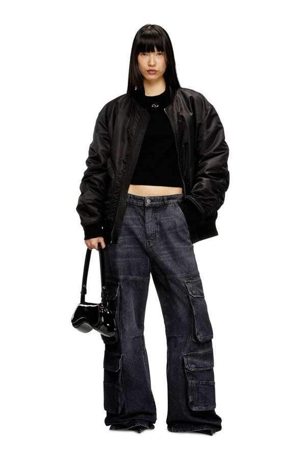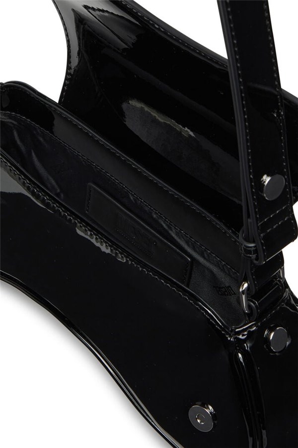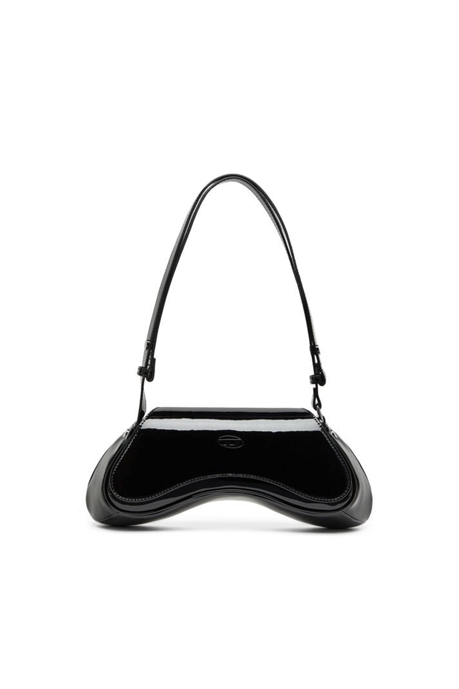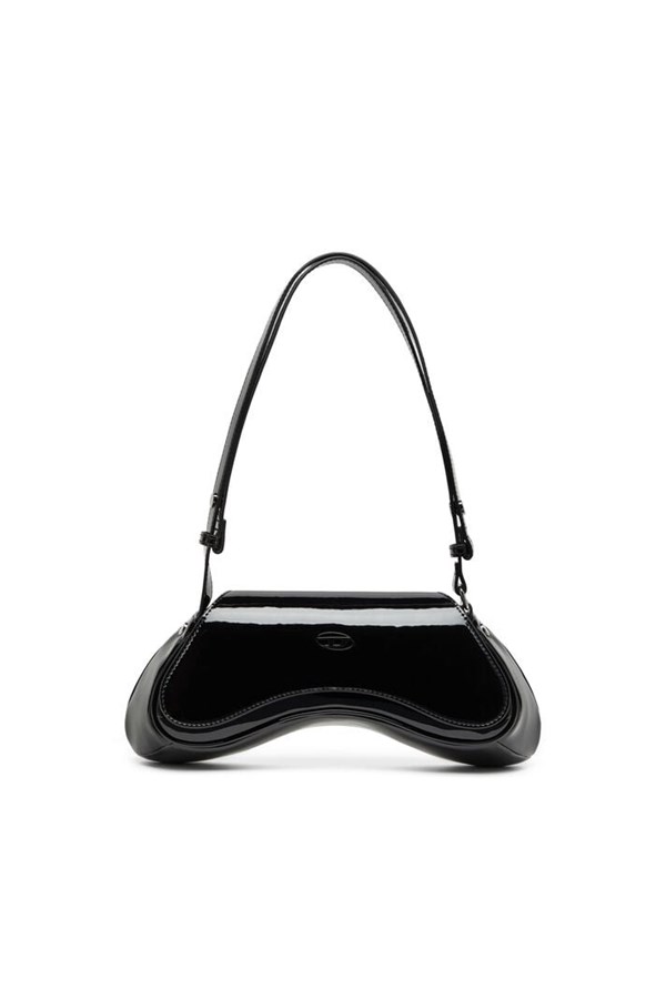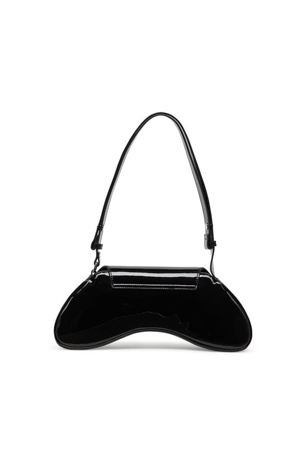 Questa borsa a spalla da donna ha una finitura ultra lucida che ne esalta le linee sinuose. Realizzata con una percentuale di materiali riciclati a minore impatto ambientale, presenta una forma strutturata e asimmetrica ispirata ai controller dei videogiochi. Il logo Oval D in metallo posizionato sulla patta è placcato tono su tono.
