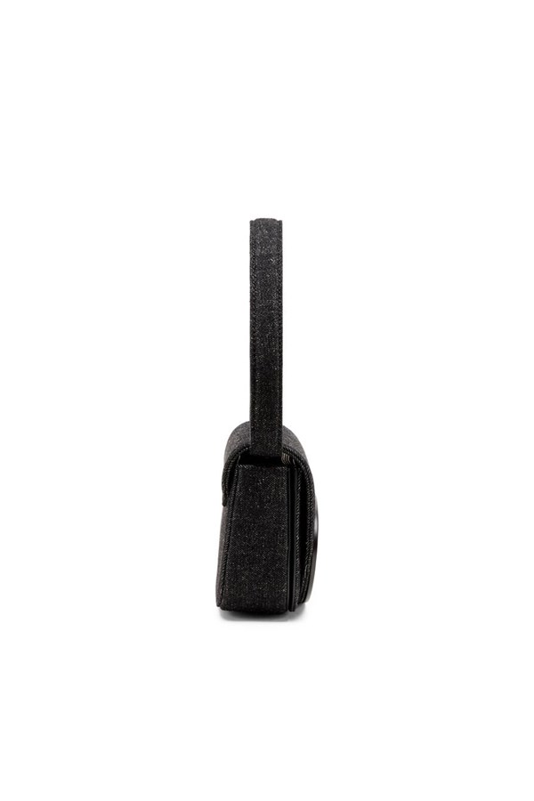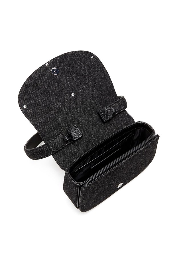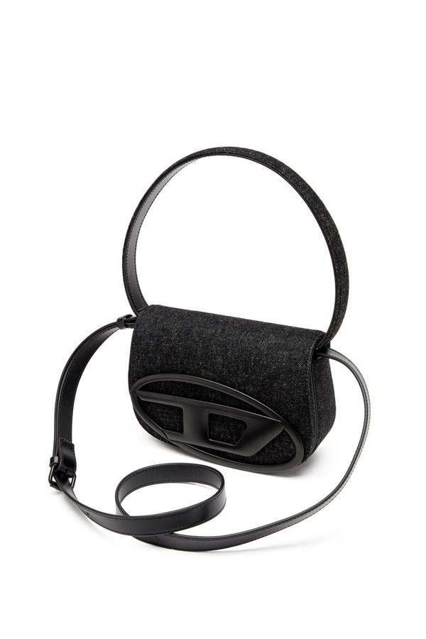 Questa borsa strutturata è una sintesi dei codici stilistici di Diesel ed è diventata un accessorio distintivo del brand. È realizzata in denim nero lavato, tessuto iconico di Diesel, con dettagli in pelle tono su tono. Presenta un manico per indossarla sotto la spalla e una tracolla più lunga. La patta è decorata con la distintiva placca Oval D, interpretata con un finish opaco che aggiunge una nota raffinata al design.
