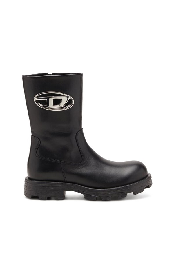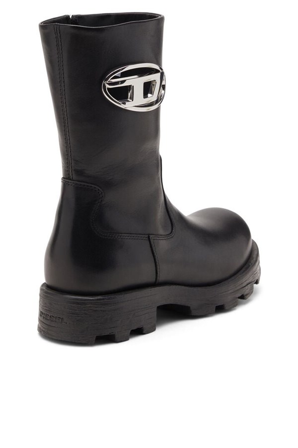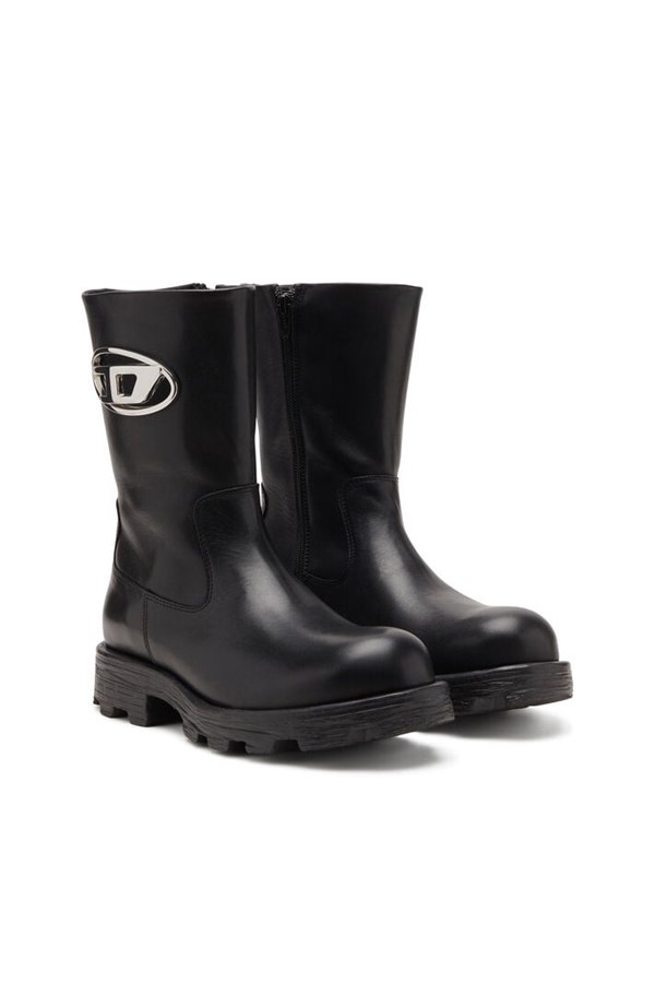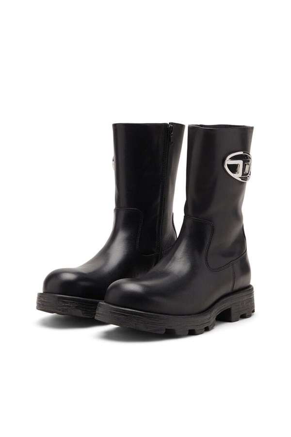 Questi biker boot da donna uniscono carattere e dettagli iconici. Realizzati in pelle nera lucida, presentano gambali ampi con zip e una placca Oval D in argento con cut-out. Le suole dentellate sono stabili e antiscivolo.