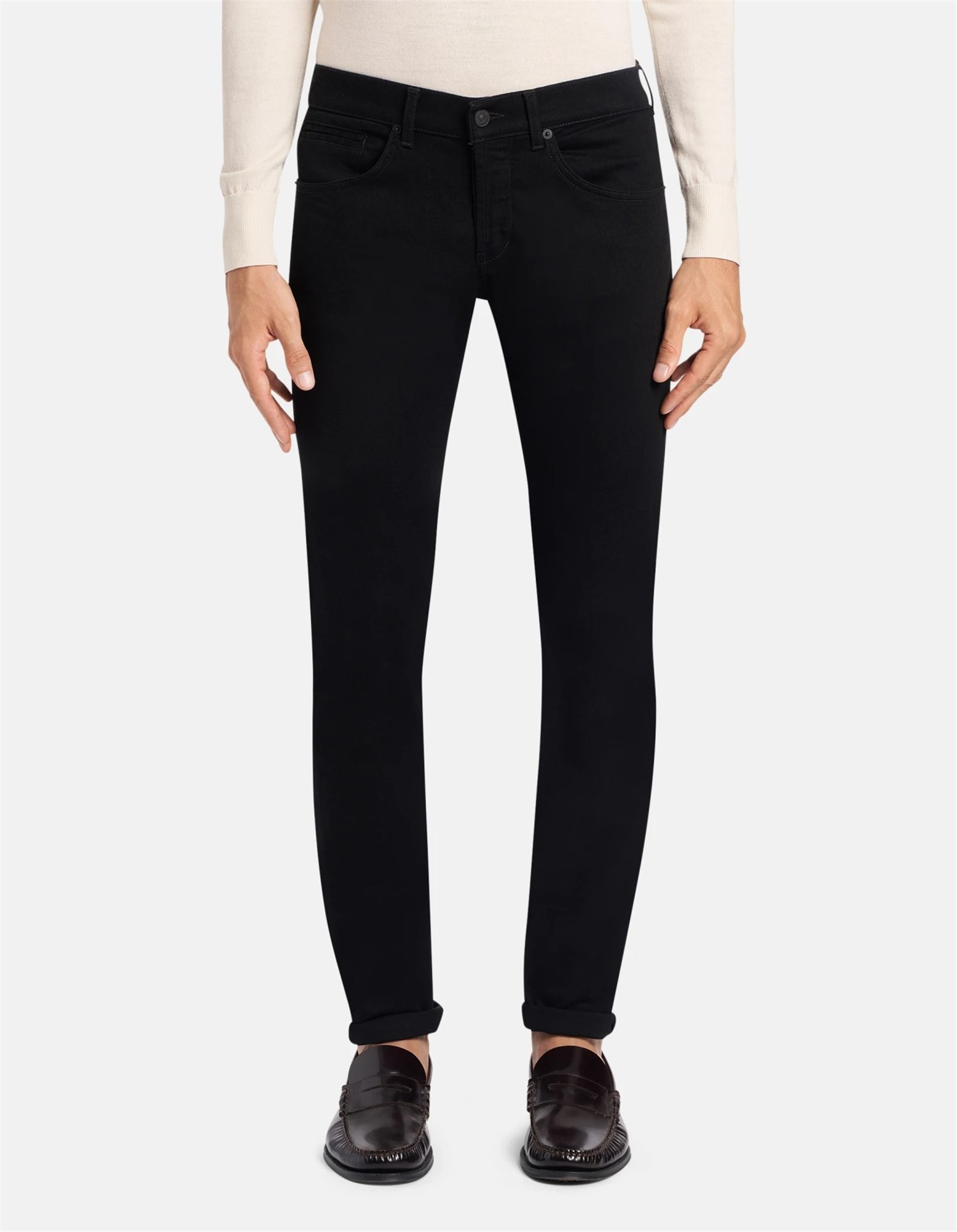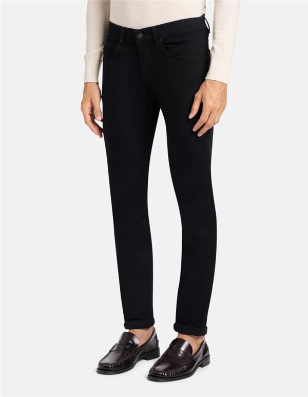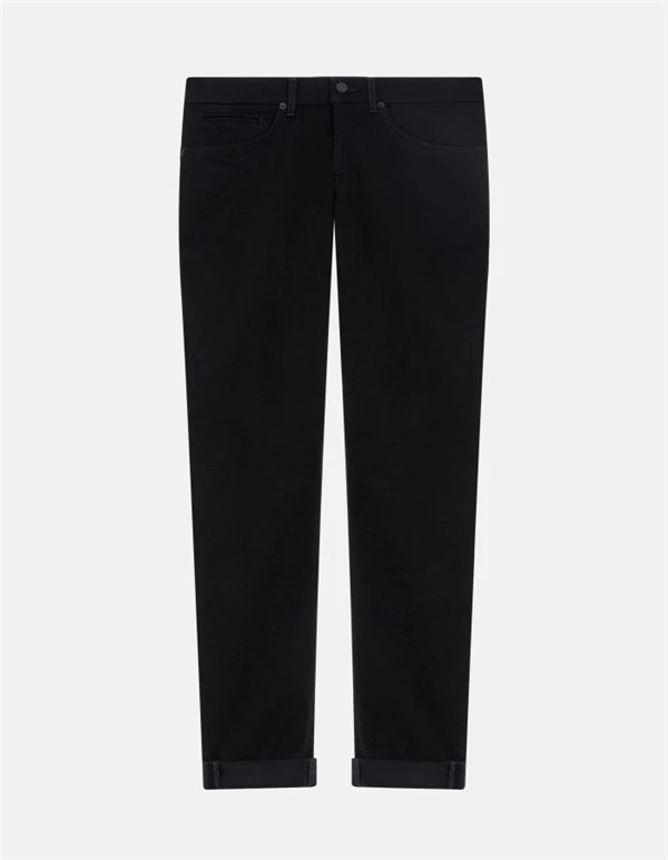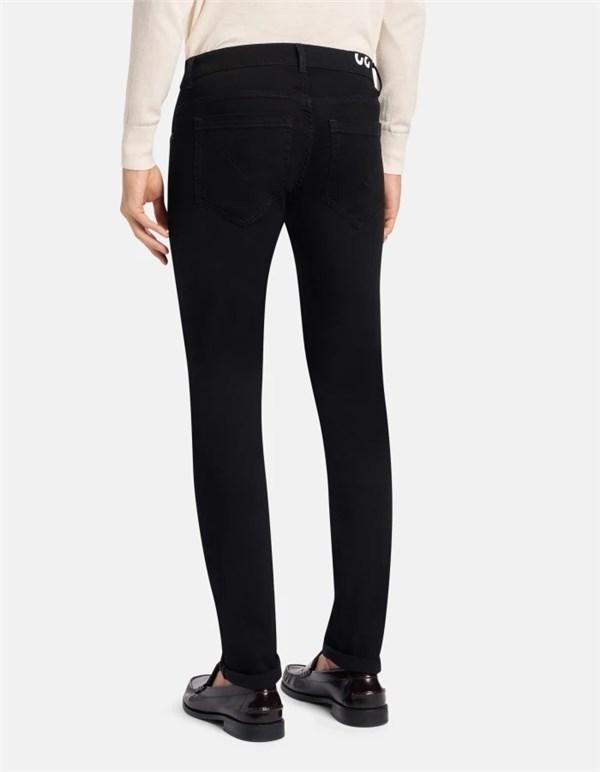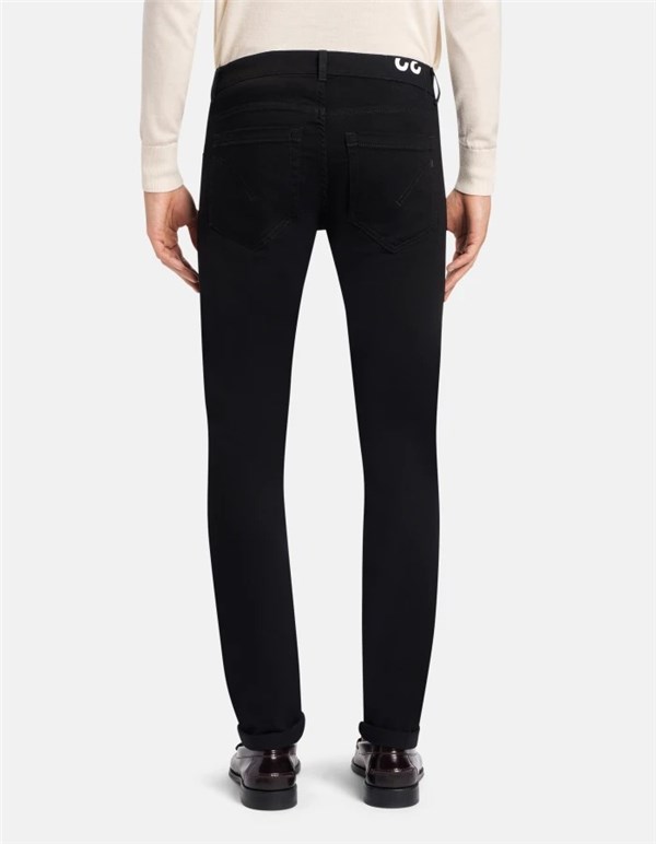 JEANS GEORGE CINQUE TASCHE SKINNY FIT, VITA BASSA, TASCHINO A FILETTO. DENIM STRETCH RICICLATO BLACK BLACK 10 OZ. LAVAGGIO NERO PULITO GRS. LOGO DONDUP. MADE IN ITALY