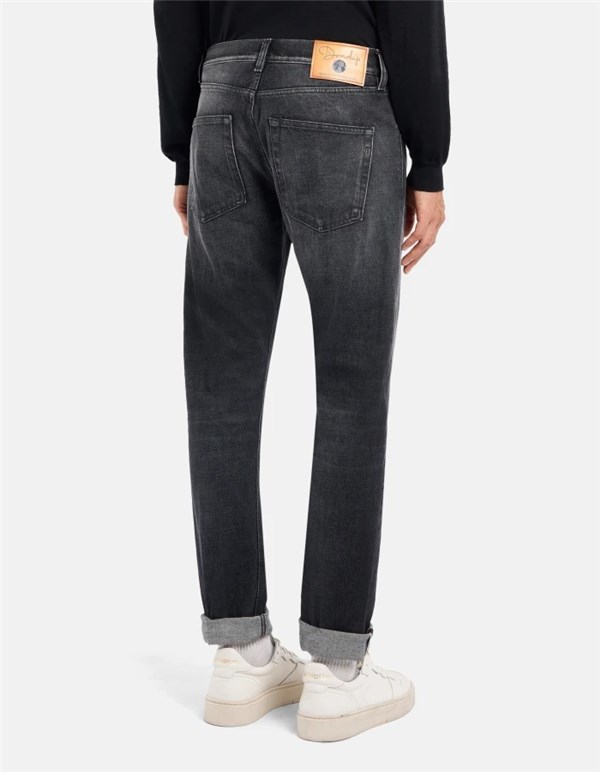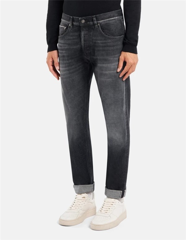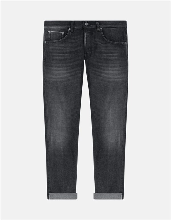JEANS ICON CINQUE TASCHE REGULAR FIT, VITA REGOLARE. DENIM FISSO CIMOSATO NERO 14 OZ. LAVAGGIO NERO VINTAGE. LOGO DONDUP. MADE IN ITALY