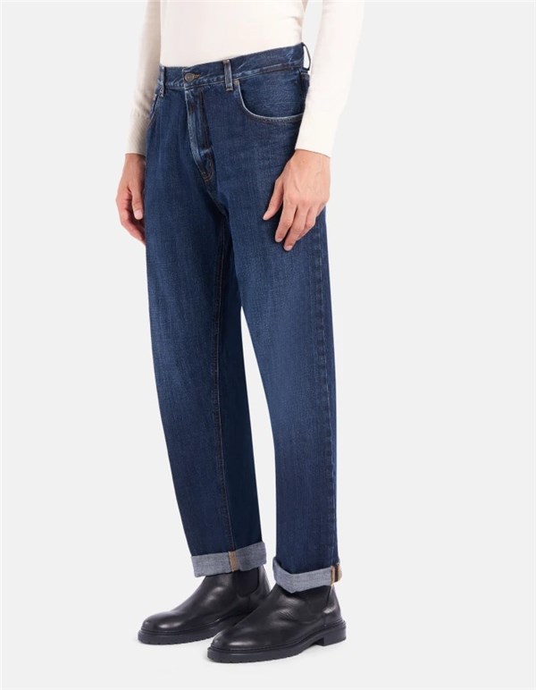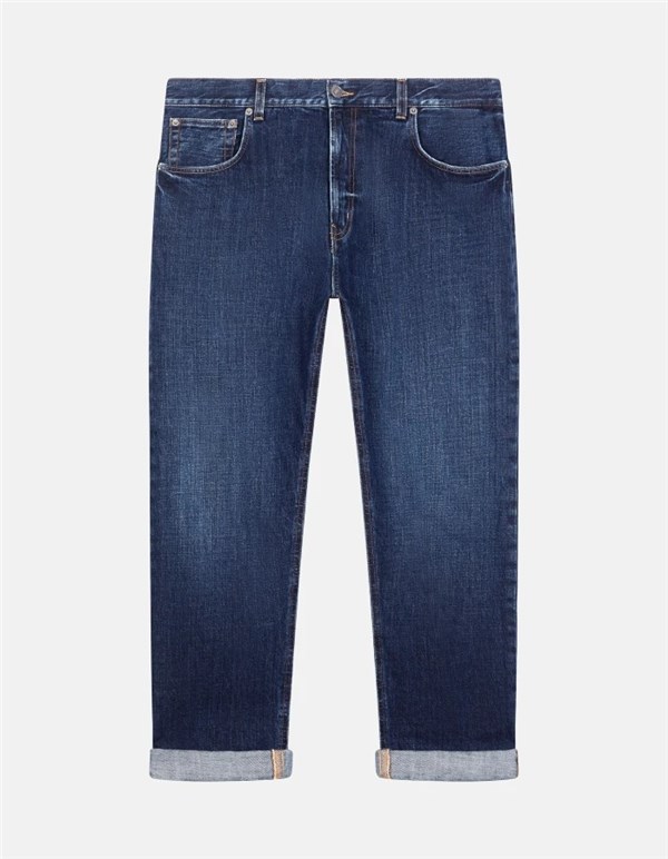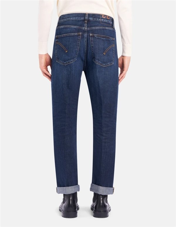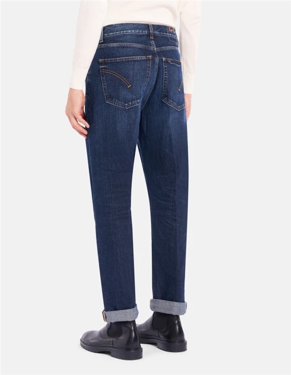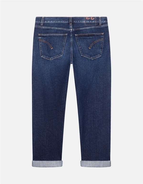 JEANS ERVIN CINQUE TASCHE LOOSE FIT, VITA BASSA. DENIM FISSO CROSS BLU 12 1/2 OZ. LAVAGGIO SCURO PULITO. LOGO DONDUP. MADE IN ITALY