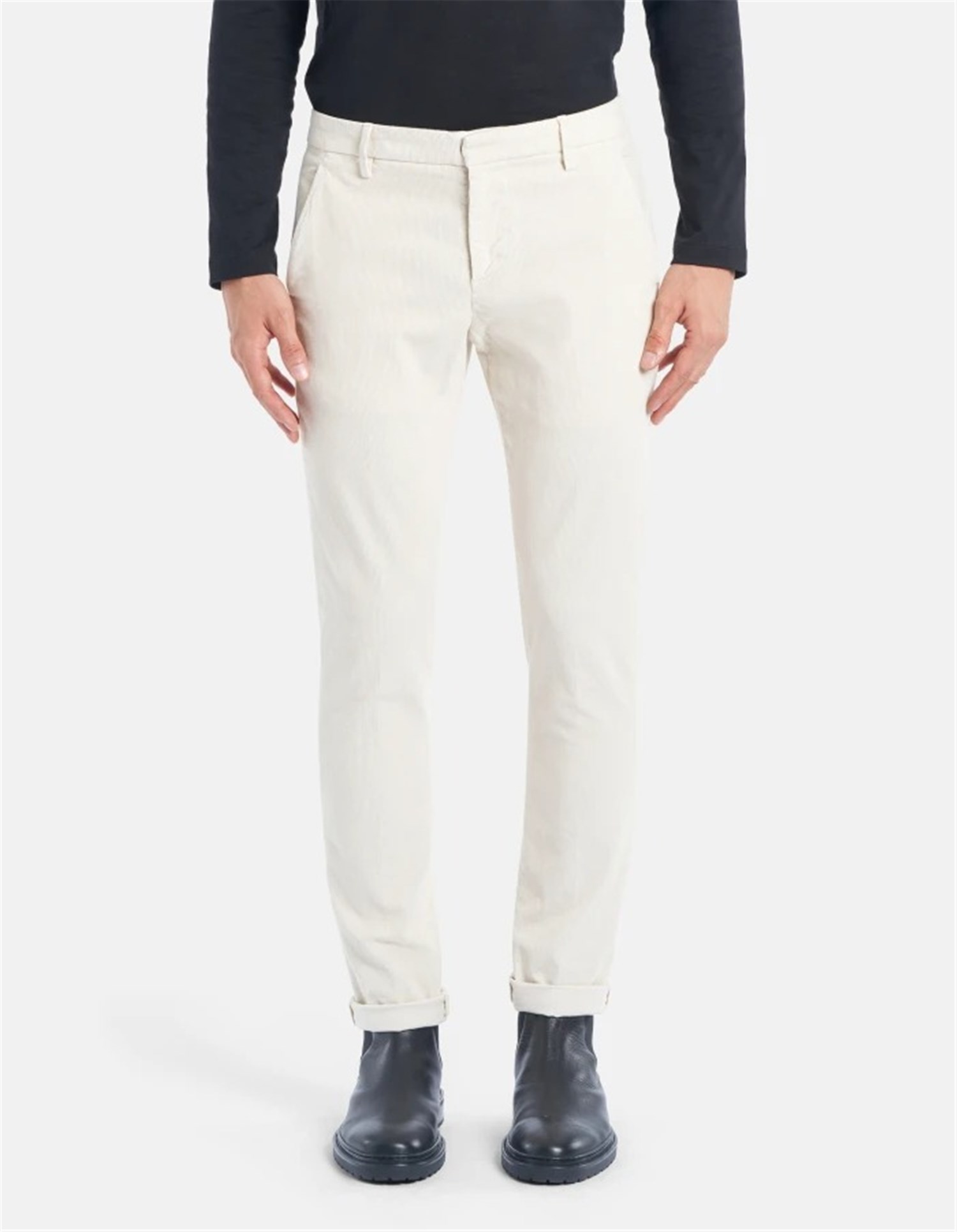 PANTALONI GAUBERT SLIM CHINO, VITA BASSA, TASCHE A FILETTO POSTERIORI. VELLUTO A COSTE 1500 RIGHE. TINTURA IN CAPO. LOGO DONDUP. MADE IN ITALY