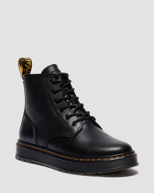 Movimento puro. I nostri stivali utility Brookline Chukka a 6 occhielli mostrano tutta la loro anima utilitaria, ma con tonnellate di stile Dr. Martens. Realizzati in pelle Lusso, un materiale cerato, leggermente testurizzato e comodo fin dal primo passo. Una tomaia minimalista che rispecchia il tema monocromatico della calzatura, come si può notare dagli occhielli e dai lacci neri. Il tutto rifinito dai nostri segni distintivi: linguetta AirWair sul tallone, suola a cuscinetto d'aria Brookline e caratteristiche cuciture gialle.
