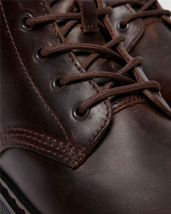 Carattere DM's cucito addosso. I nostri stivali utility Brookline Chukka a 6 occhielli mostrano tutta la loro anima utilitaria, ma con un twist in stile Dr. Martens. Realizzati in pelle Crazy Horse, un materiale dall'aspetto naturalmente vissuto che sviluppa una texture distintiva con il passare del tempo. Una tomaia monocromatica con i suoi occhielli e lacci neri; il tutto rifinito dai nostri segni distintivi: linguetta AirWair sul tallone, suola a cuscinetto d'aria Brookline e caratteristiche cuciture gialle.