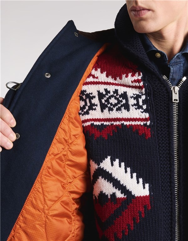 Dotata di maxi tasche con patta e automatici e un taschino interno, ha una doppia chiusura con automatici nascosti. Completa il modello l'etichetta Fay Archive cucita sulla tasca sinistra.