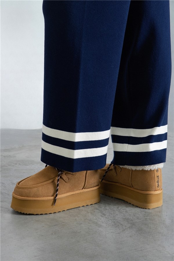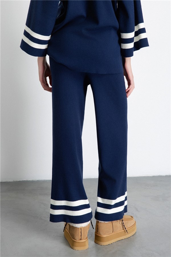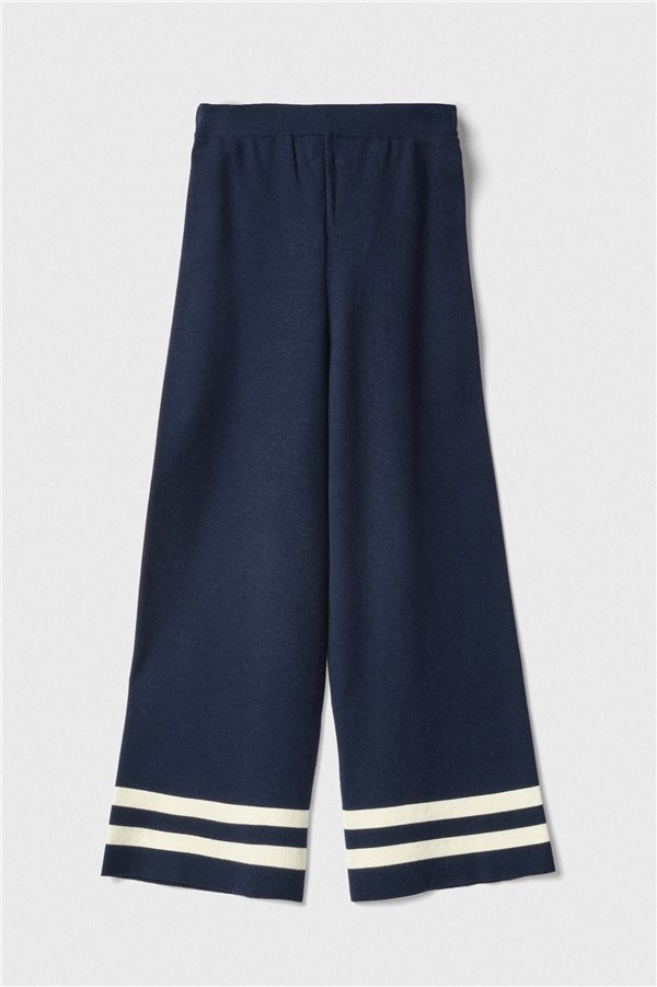 Modello in maglia misto viscosa, con elastico in vita, fondo con bande a contrasto, vestibilità ampia.