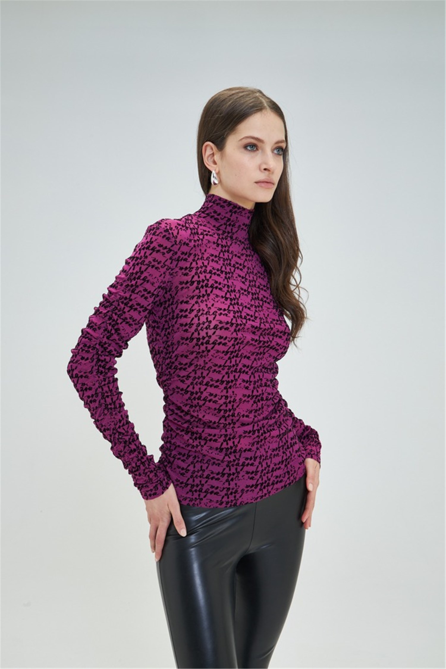- Maglia a collo alto in tulle semitrasparente.