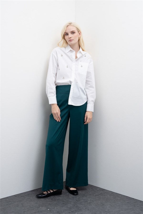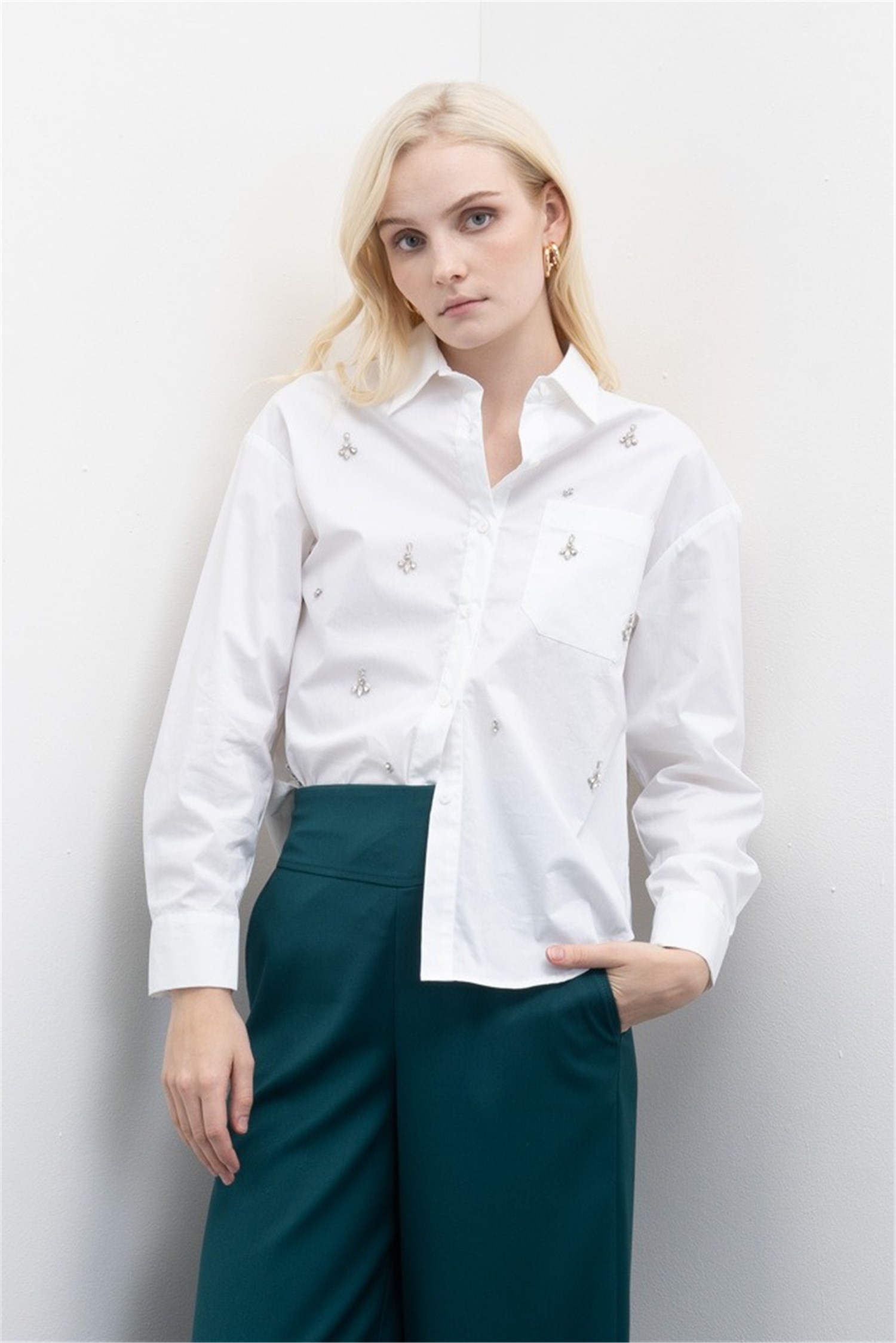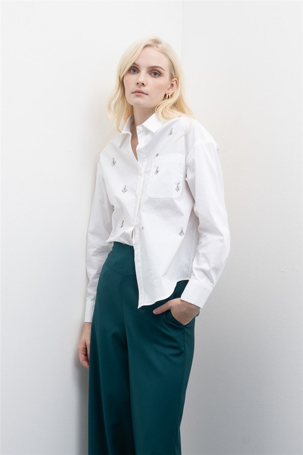 - Camicia in popeline di cotone con ricamo a mano.